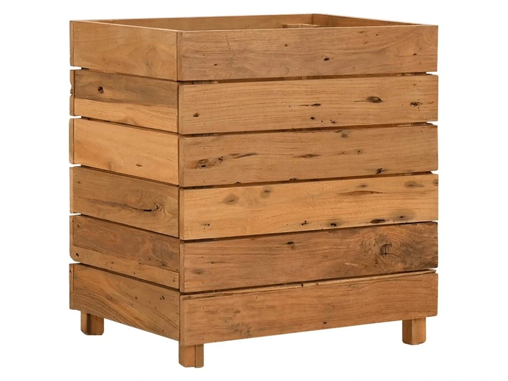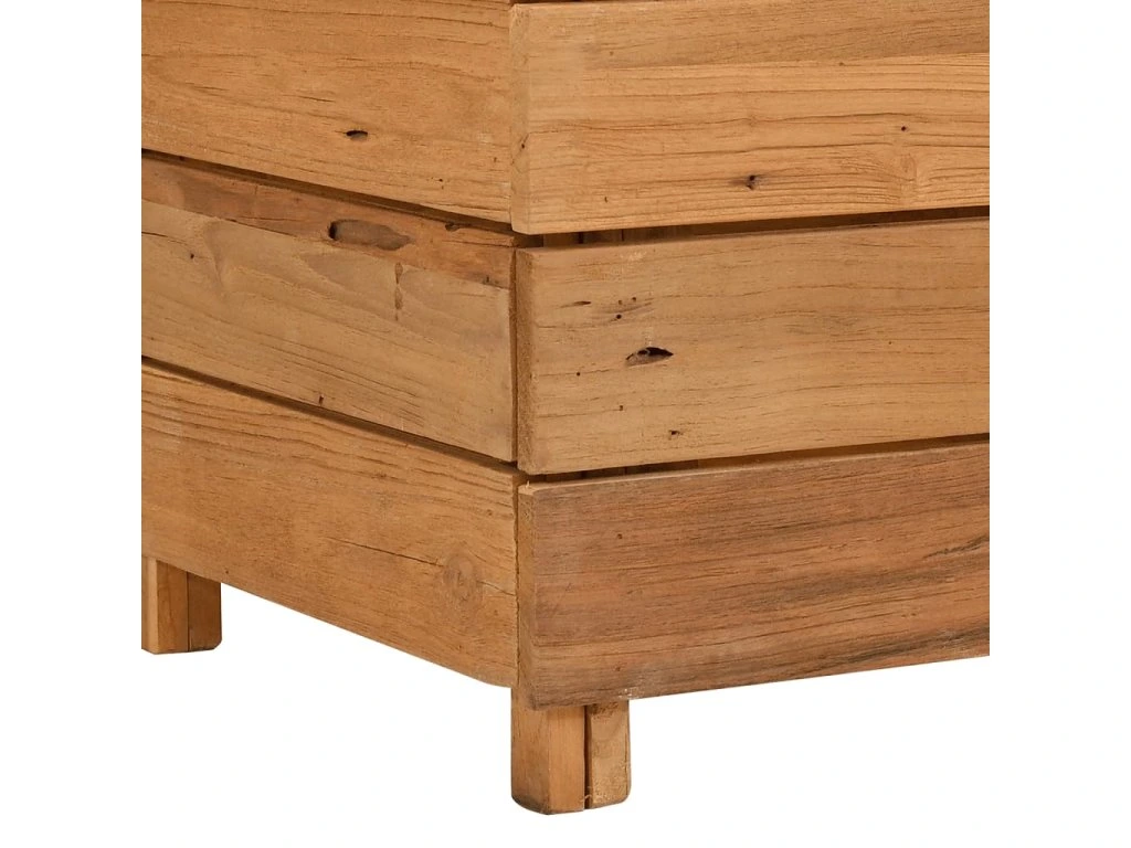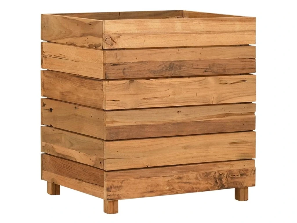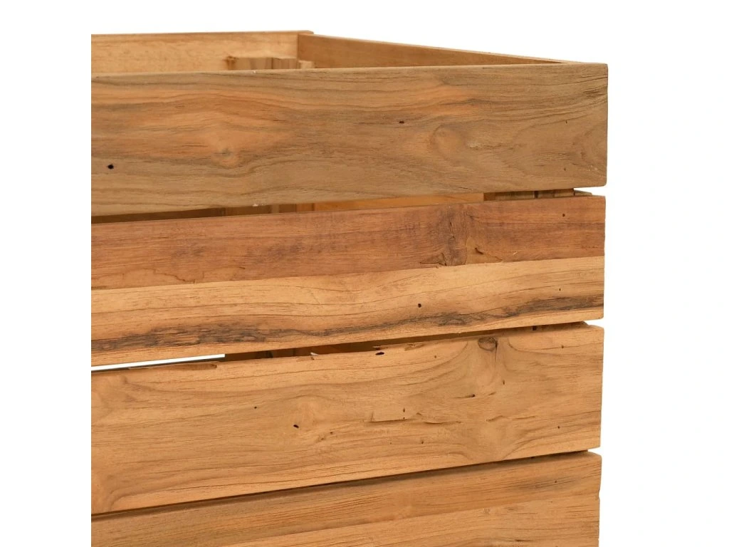 Tento kvetináč je vyrobený z recyklovaného tíkového dreva, vďaka čomu je naozaj robustný a trvácny. Vďaka krásnej textúre dreva je každý kus nábytku jedinečný a trochu odlišný od ostatných. Štyri drevené nohy v spodnej časti prinášajú mimoriadnu stabilitu. Spodná časť kvetináča obsahuje oceľový držiak, na ktorý si môžete poukladať kvetináče. Výrobok sa okrem toho jednoducho montuje.