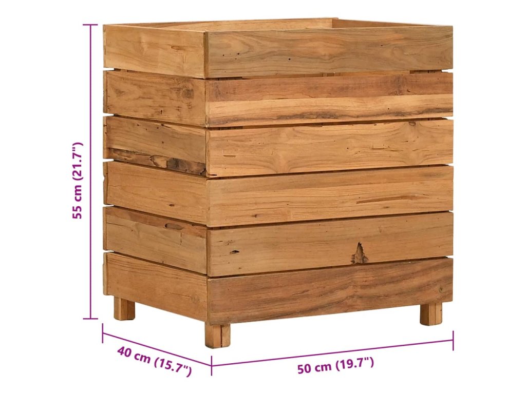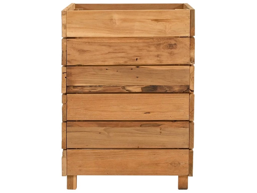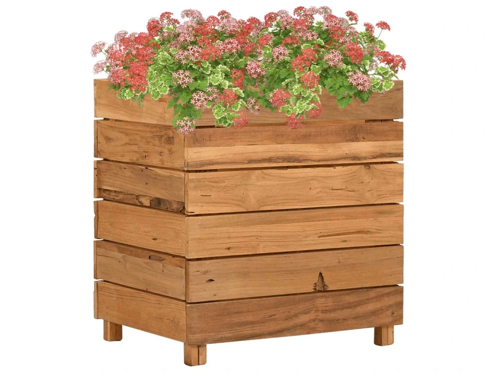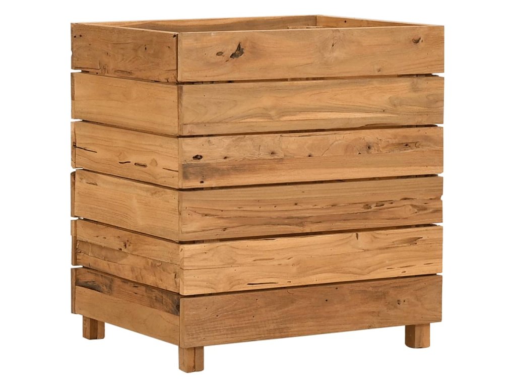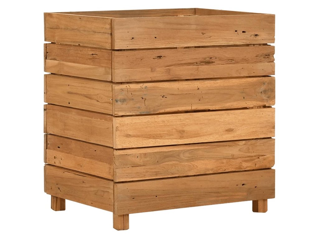 Tento kvetináč je vyrobený z recyklovaného tíkového dreva, vďaka čomu je naozaj robustný a trvácny. Vďaka krásnej textúre dreva je každý kus nábytku jedinečný a trochu odlišný od ostatných. Štyri drevené nohy v spodnej časti prinášajú mimoriadnu stabilitu. Spodná časť kvetináča obsahuje oceľový držiak, na ktorý si môžete poukladať kvetináče. Výrobok sa okrem toho jednoducho montuje.