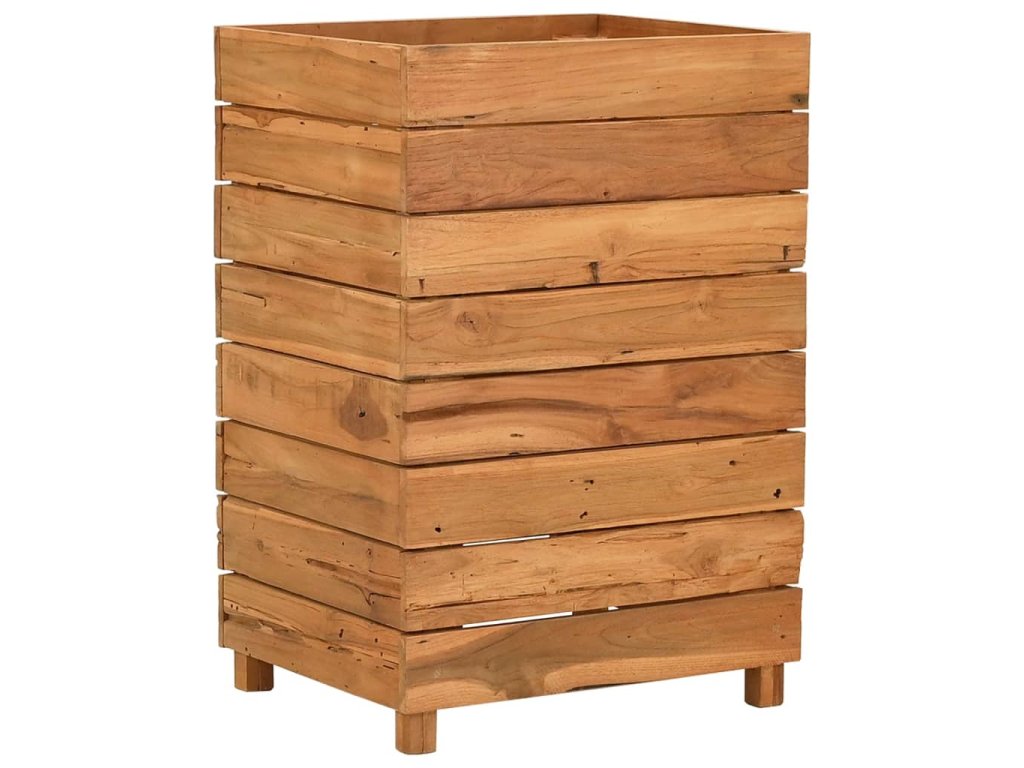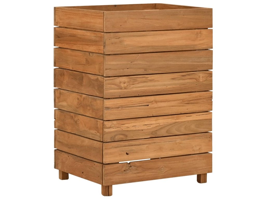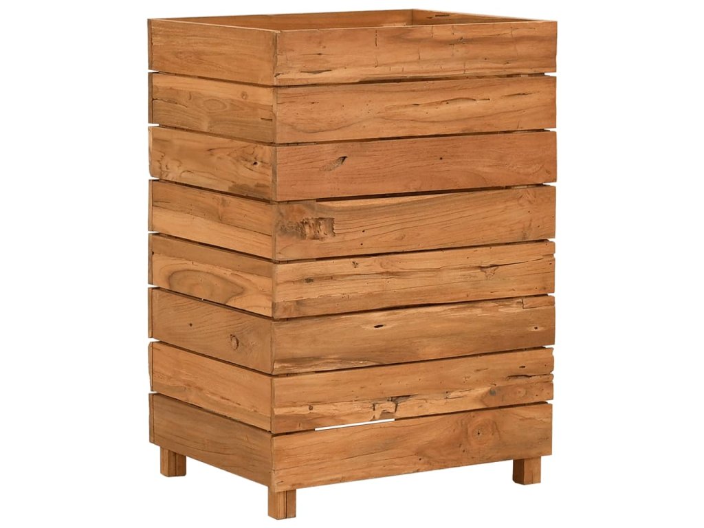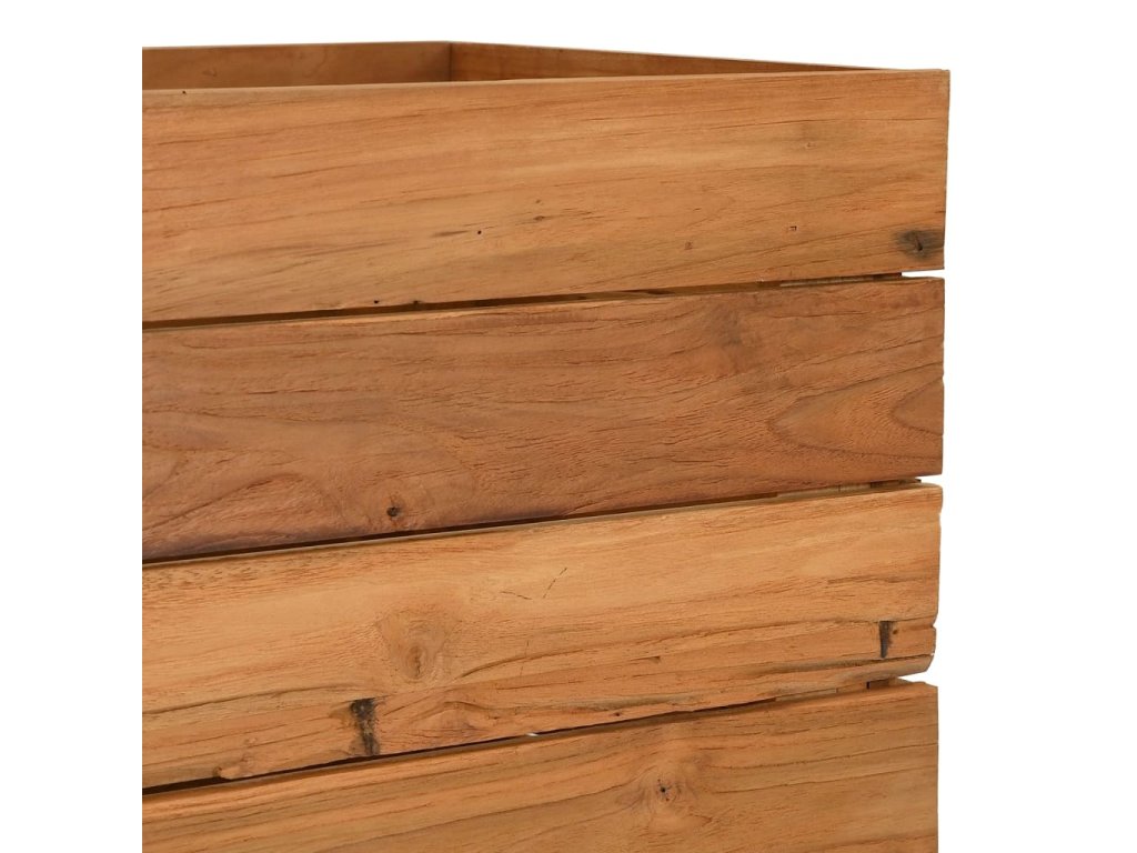 Tento kvetináč je vyrobený z recyklovaného tíkového dreva, vďaka čomu je naozaj robustný a trvácny. Vďaka krásnej textúre dreva je každý kus nábytku jedinečný a trochu odlišný od ostatných. Štyri drevené nohy v spodnej časti prinášajú mimoriadnu stabilitu. Spodná časť kvetináča obsahuje oceľový držiak, ktorý sa dá upevniť do 2 úrovní, aby ste mohli kvetináče umiestniť do vhodnej výšky. Výrobok sa okrem toho jednoducho montuje.