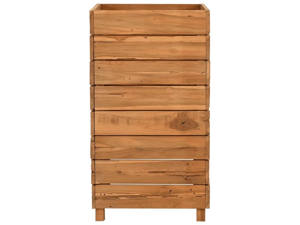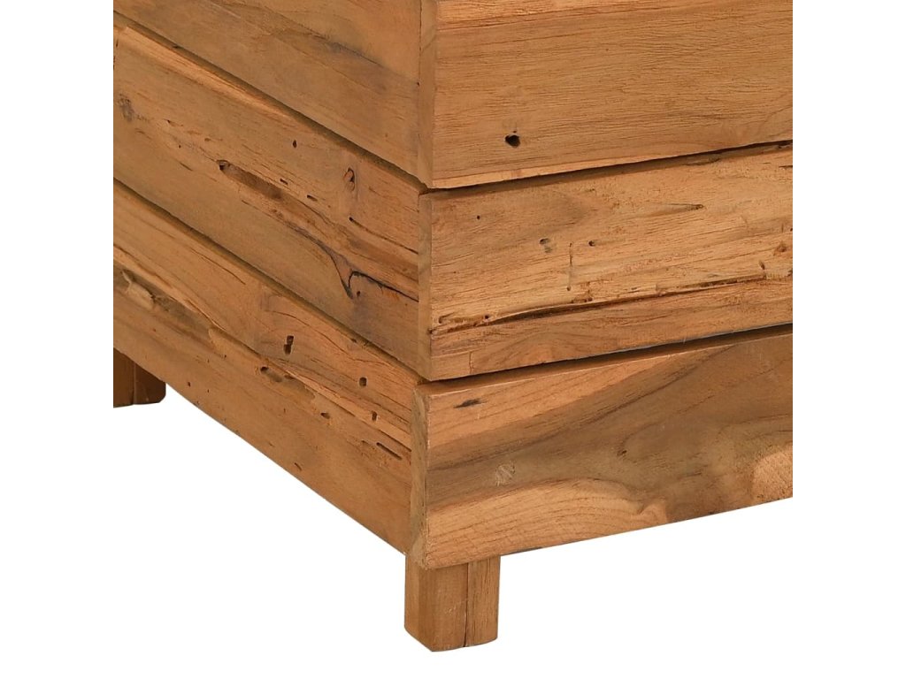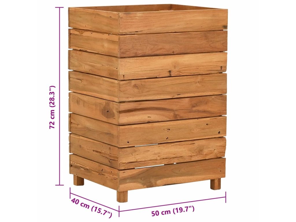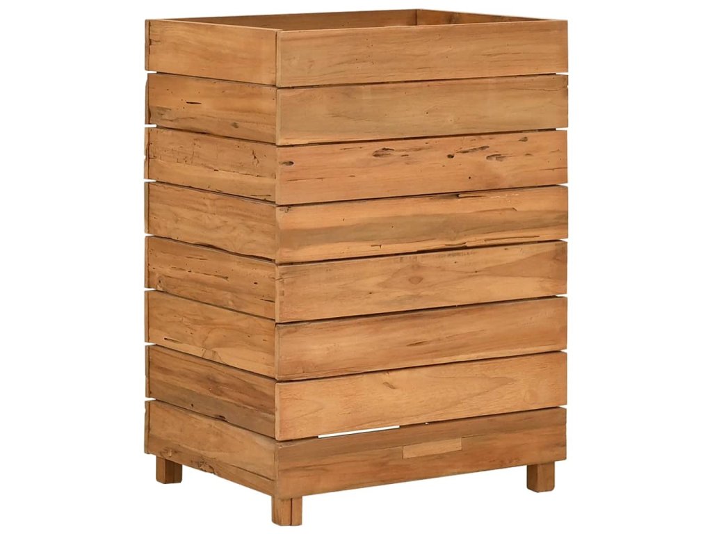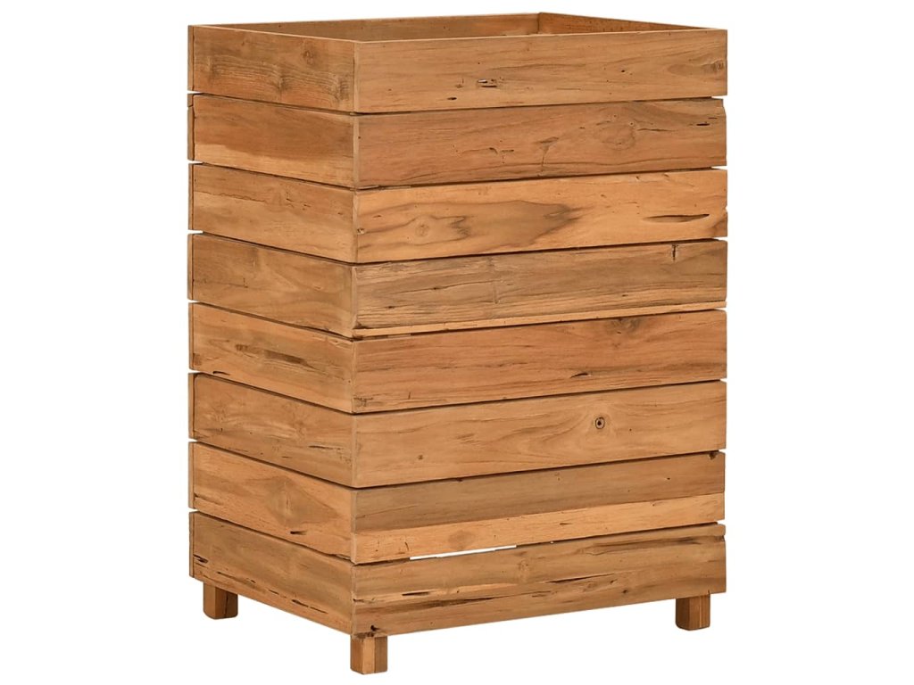 Tento kvetináč je vyrobený z recyklovaného tíkového dreva, vďaka čomu je naozaj robustný a trvácny. Vďaka krásnej textúre dreva je každý kus nábytku jedinečný a trochu odlišný od ostatných. Štyri drevené nohy v spodnej časti prinášajú mimoriadnu stabilitu. Spodná časť kvetináča obsahuje oceľový držiak, ktorý sa dá upevniť do 2 úrovní, aby ste mohli kvetináče umiestniť do vhodnej výšky. Výrobok sa okrem toho jednoducho montuje.
