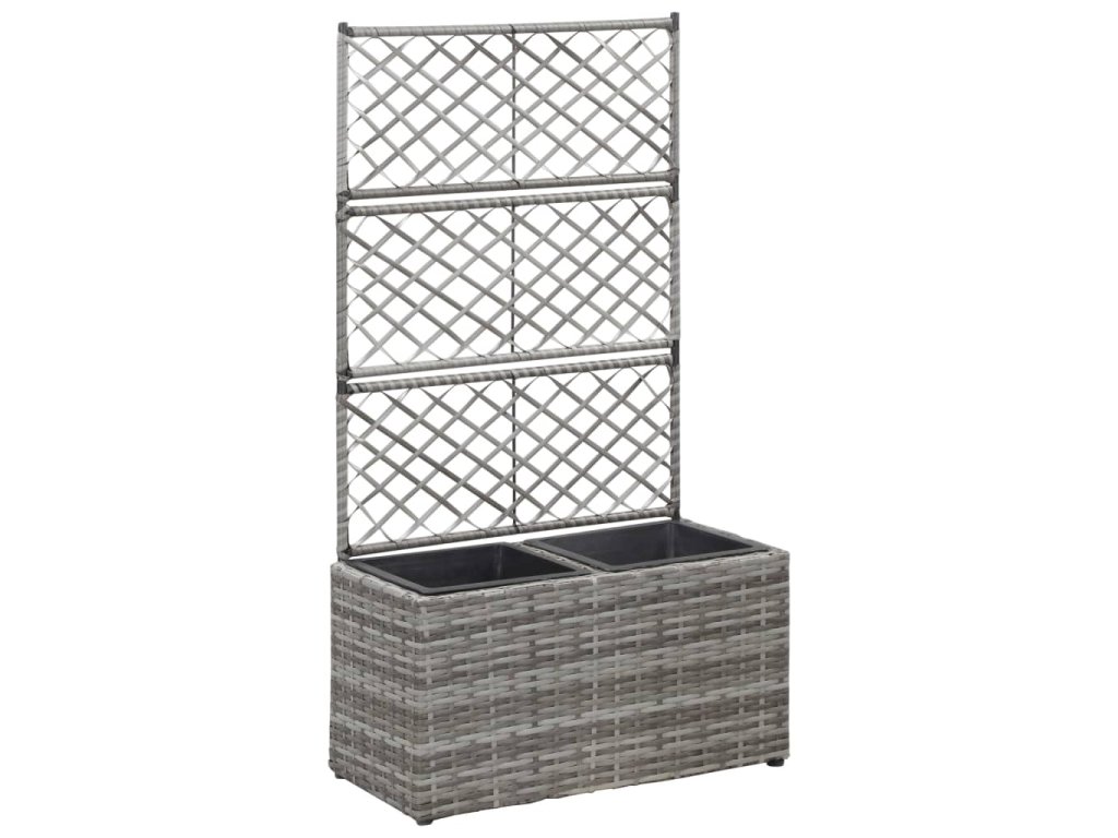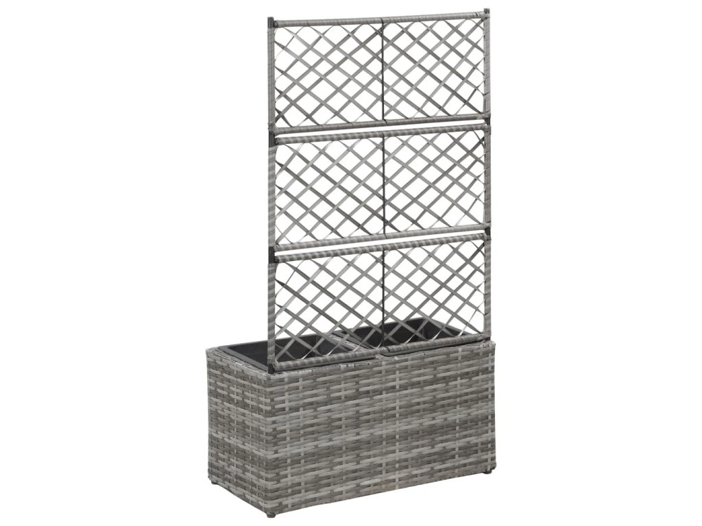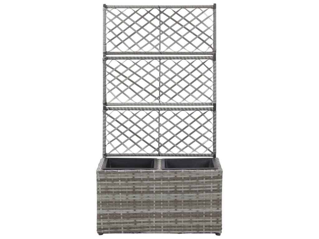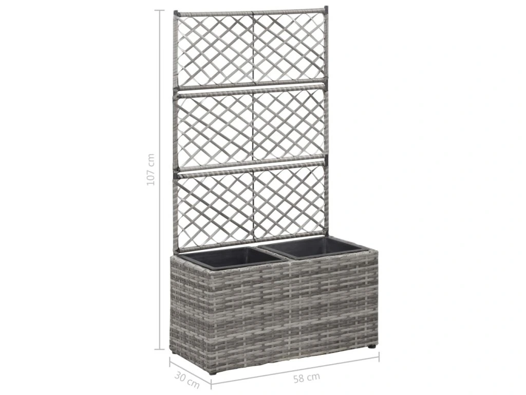 Multidom Vyvýšený záhon+mriežka, 2 nádoby 58x30x107 cm, polyratan, sivý