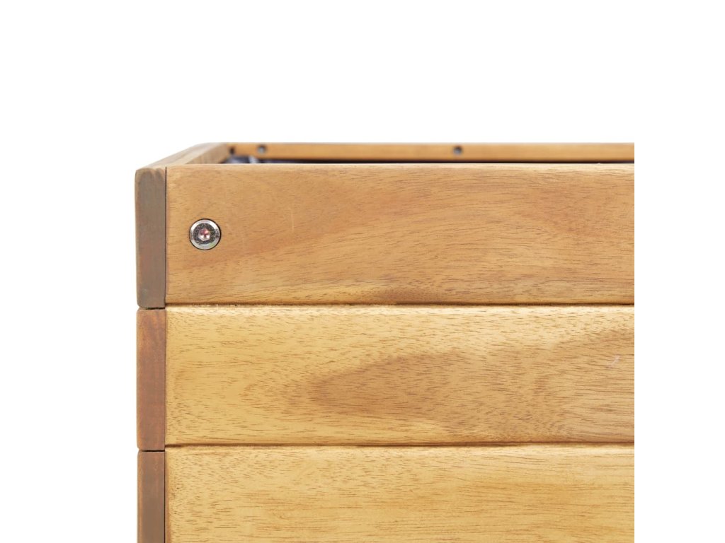 Vyvýšený kvetináč je vyrobený z masívneho akáciového dreva, ktoré má jemnú olejovú povrchovú úpravu. Vďaka tomu má bohatú prirodzenú farbu a je odolný voči poveternostným vplyvom. Kvetináč má nenápadný, rustikálny dizajn a dodá prírodný štýl do vášho vonkajšieho obytného priestoru.