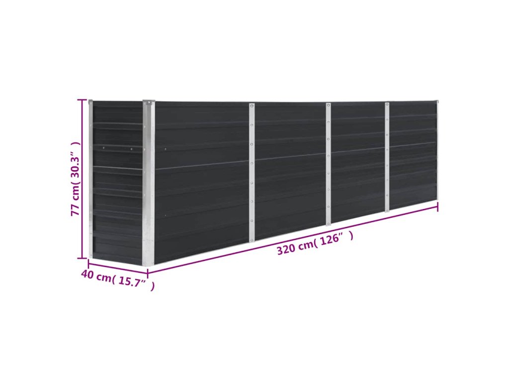 Multidom Vyvýšený záhradný kvetináč antracitový 320x40x77 cm pozinkovaná oceľ