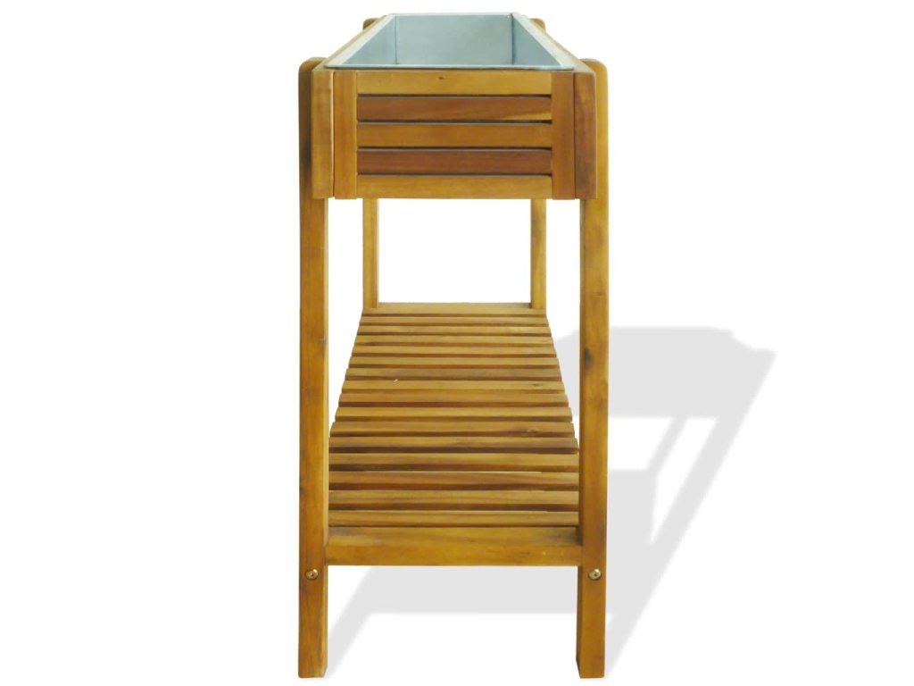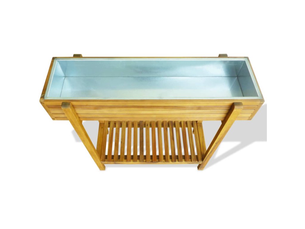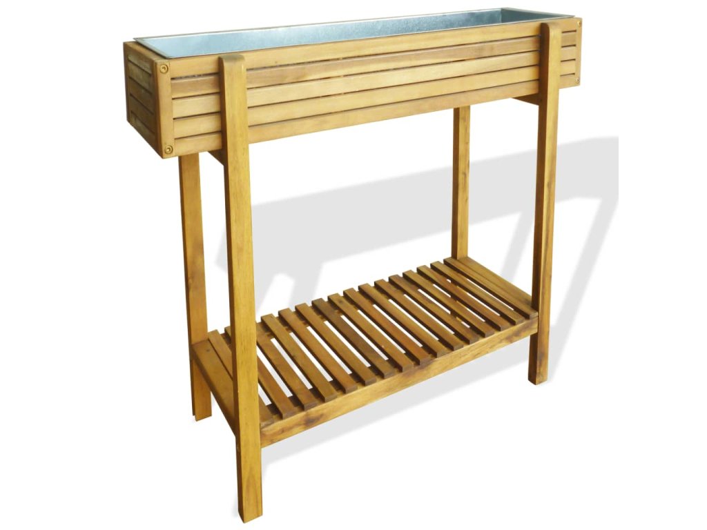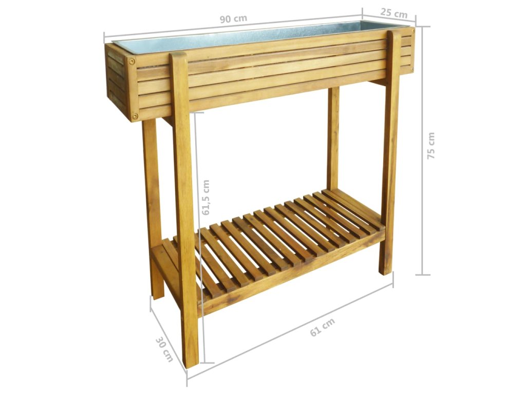 Kvetináč je vyrobený z akáciového masívu ošetreného svetlým olejovým náterom, ktorý zvýrazňuje sýte, prírodné farebné odtiene dreva a zároveň prináša odolnosť voči poveternostným vplyvom. Kvetináč má zinkovú vložku, ktorá je odolná voči hrdzi.
