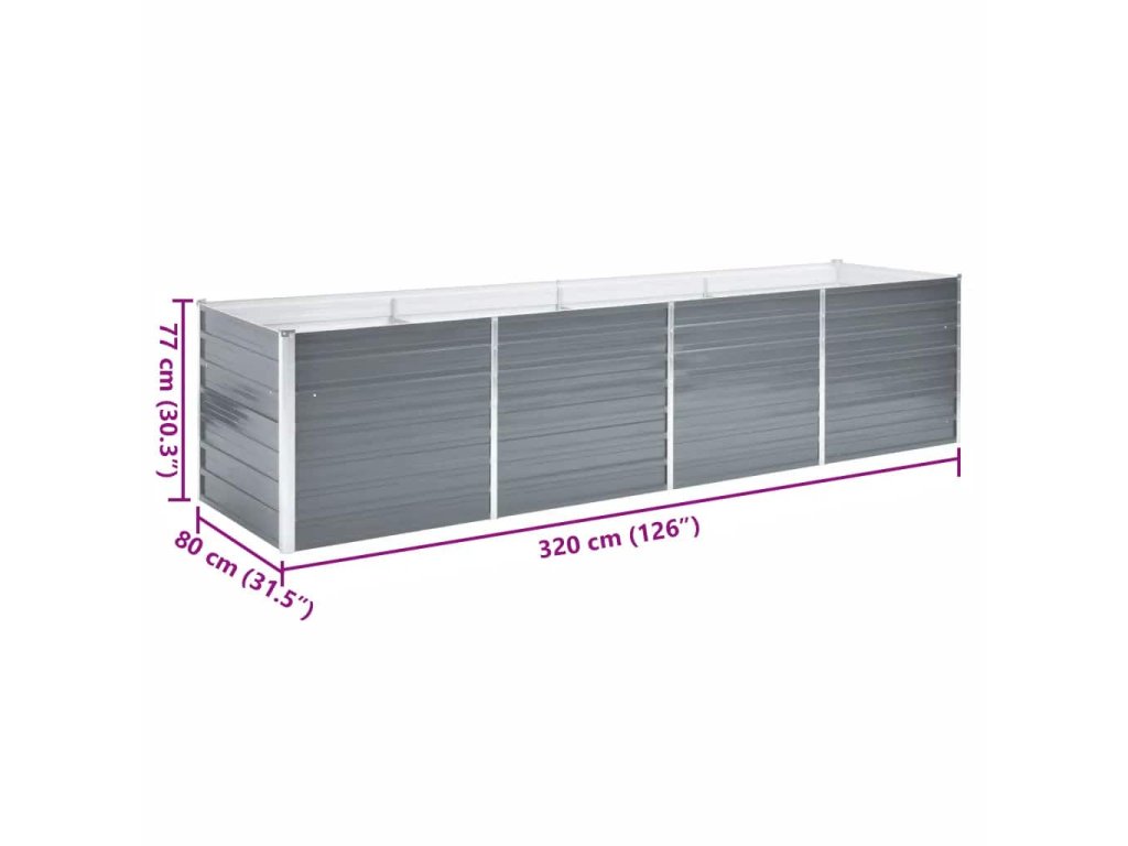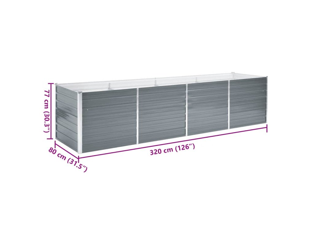 Multidom Vyvýšený záhradný záhon, pozinkovaná oceľ 320x80x77 cm, sivý