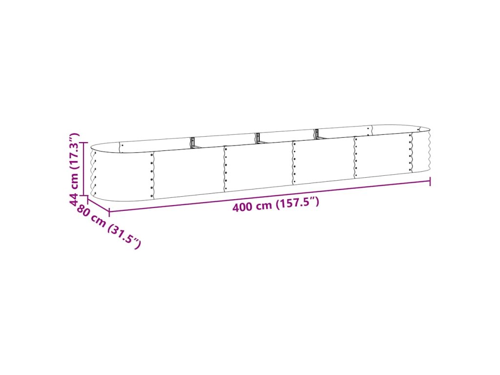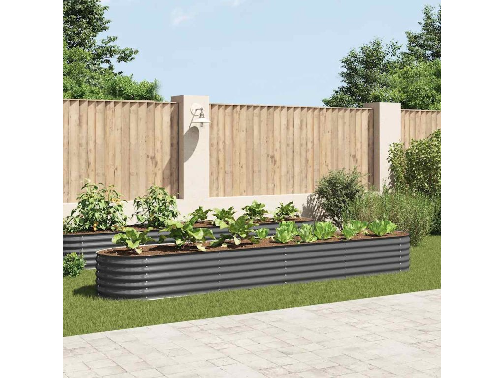 Multidom Vyvýšený záhradný záhon 400x80x44 cm, pozinkovaná oceľ, sivý