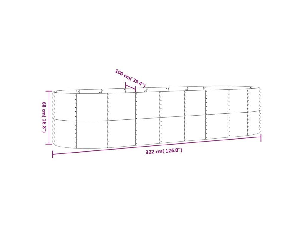 Multidom Vyvýšený záhradný záhon pozinkovaná oceľ 322x100x68 cm sivý