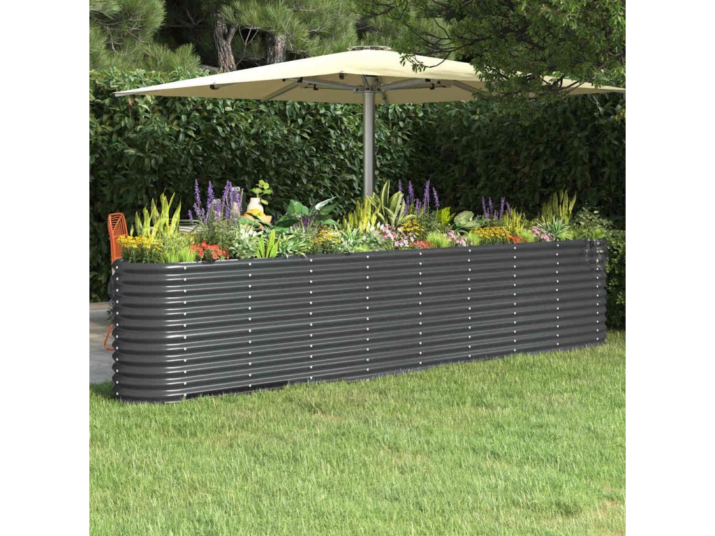 Multidom Vyvýšený záhradný záhon pozinkovaná oceľ 332x40x68 cm antracit