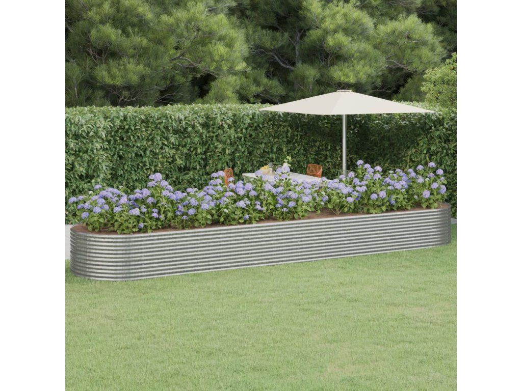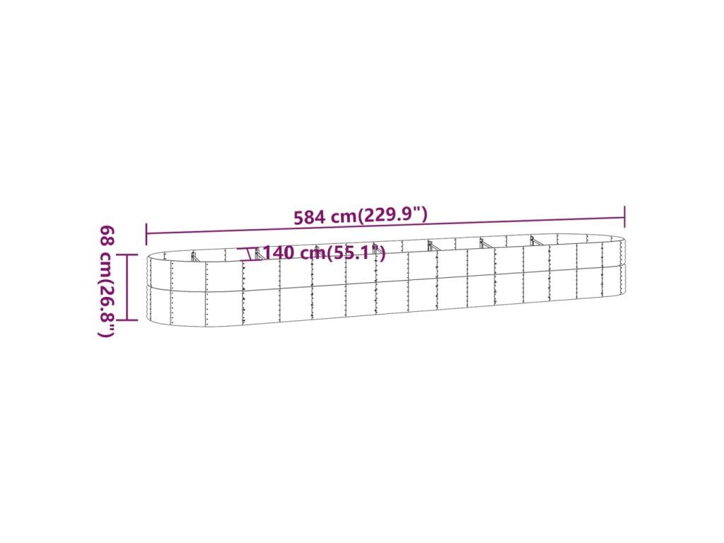 Multidom Vyvýšený záhradný záhon práškovaná oceľ 584x140x68cm strieborný