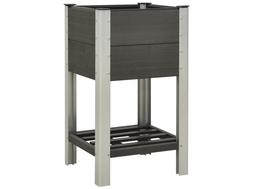 Kvetináč je vyrobený z drevoplastového kompozitu, vďaka čomu je pevný, odolný voči poveternostným vplyvom a vhodný na vonkajšie použitie. Záhradný kvetináč je vhodný na umiestnenie veľkého množstva pôdy a poskytuje dostatok priestoru pre vaše rastliny, zeleninu, bylinky a kvety. Otvorené dno ponúka skvelé vetranie. Polica navyše ponúka dostatok úložného priestoru pre kvetináče a náradie.