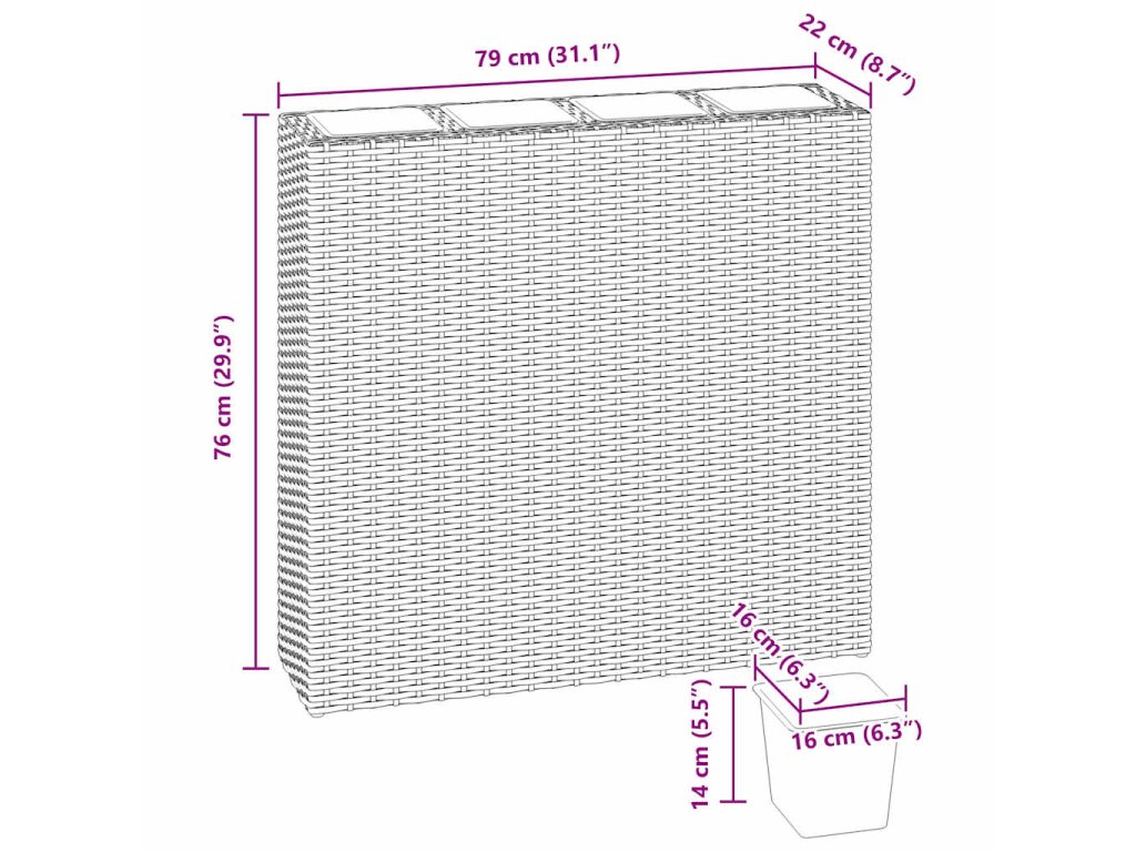 - Rozmery kvetináča: 79 x 22 x 76 cm (D x Š x V)