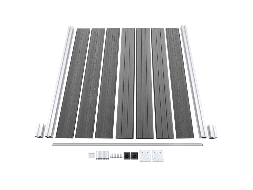 - Materiál: Drevoplastový kompozit + koncová tyč a stĺpiky z hliníka