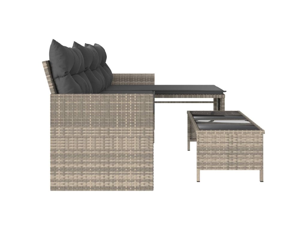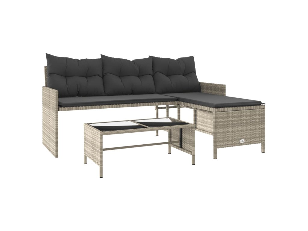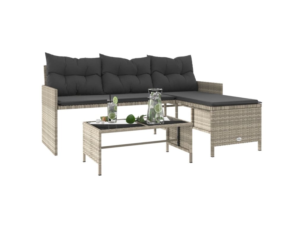 Multidom Záh. pohovka so stolíkom a vankúšmi tvar L svetlosivá polyratan