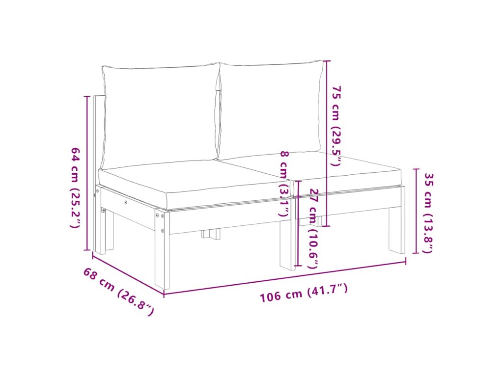Multidom Záhr. pohovka bez podrúčok s vankúšmi 2-miestna masívna akácia