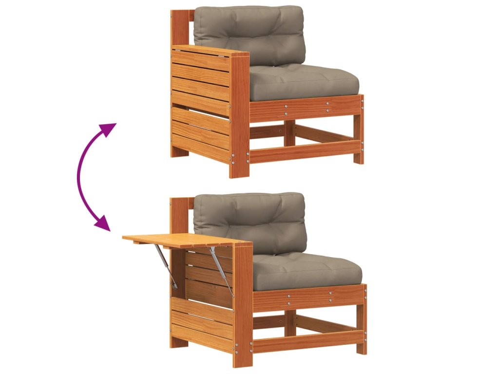 Multidom Záhr. pohovka s opierkou ruky a vankúšom voskovohnedá borovica