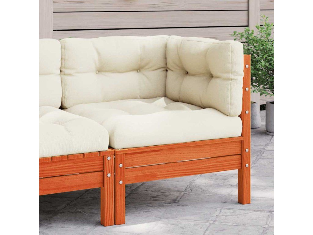 Multidom Záhr. rohová pohovka s vankúšmi vosková hnedá borovicový masív