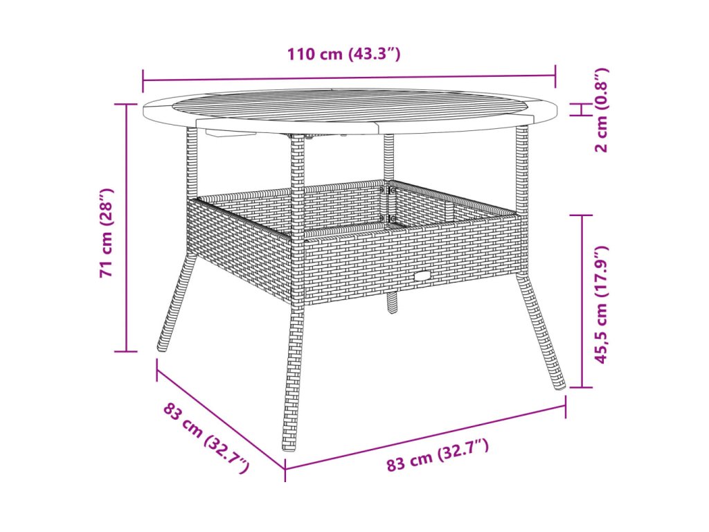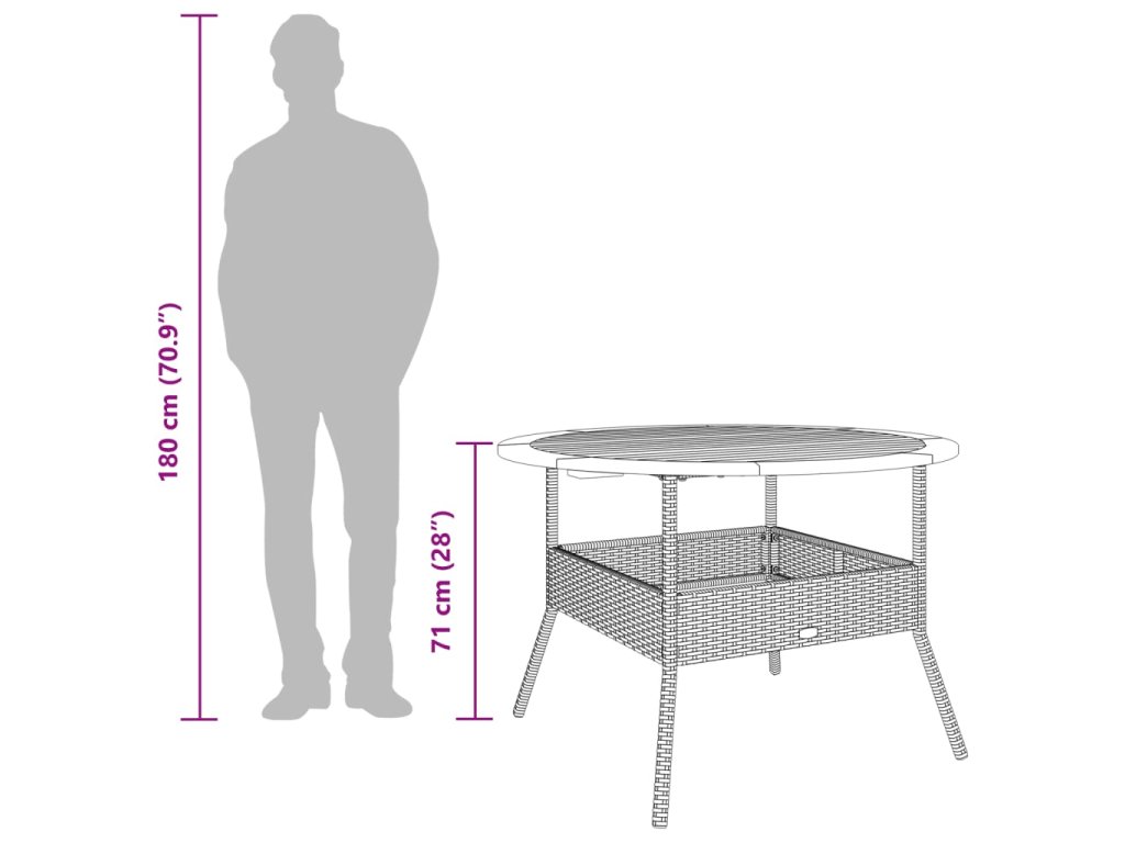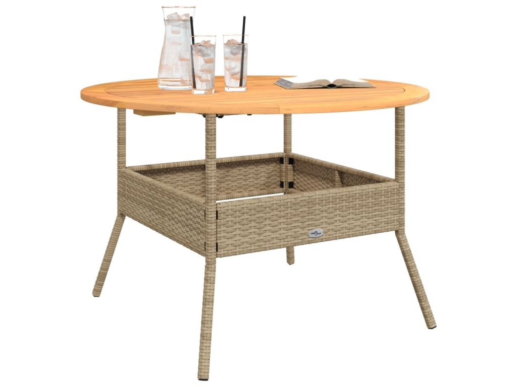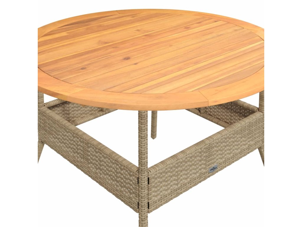 Multidom Záhr. stôl s akáciovou doskou béžový Beige Ø110x71 cm polyratan