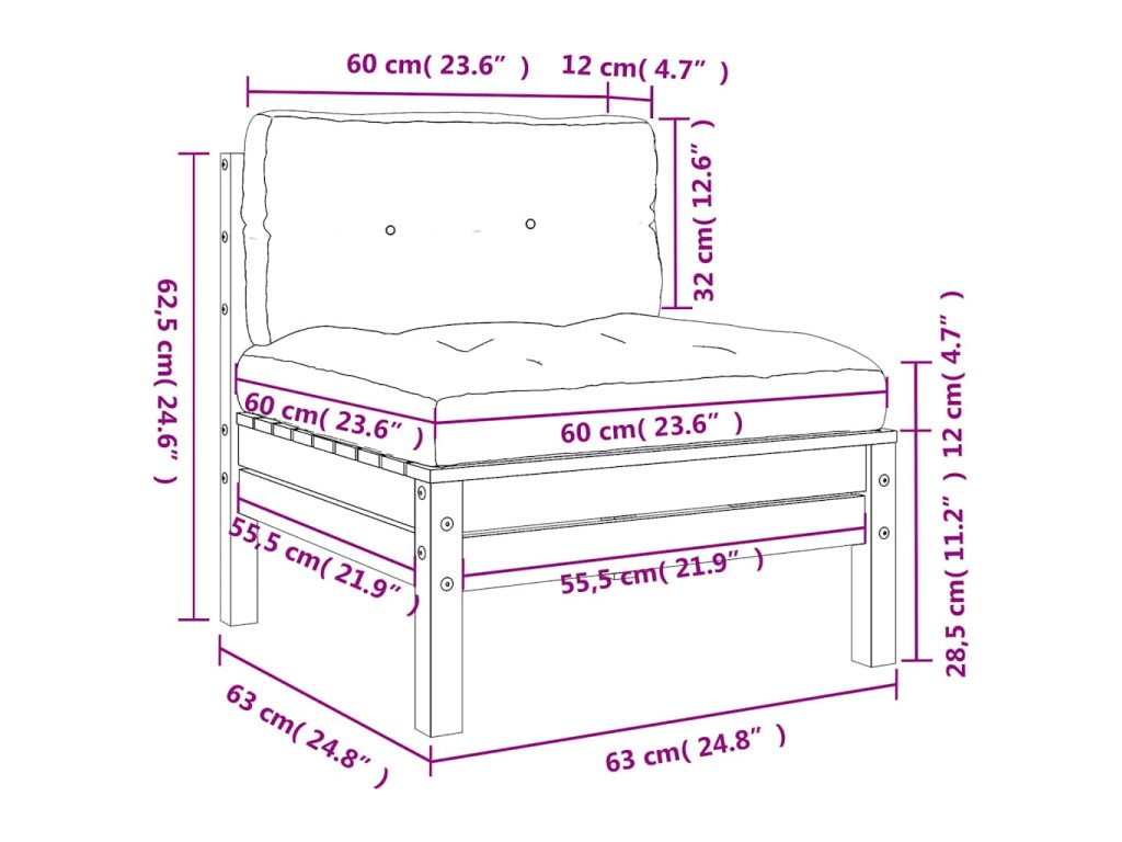 - Rozmery pohovky bez podrúčok: 63 x 63 x 62,5 cm (Š x H x V)