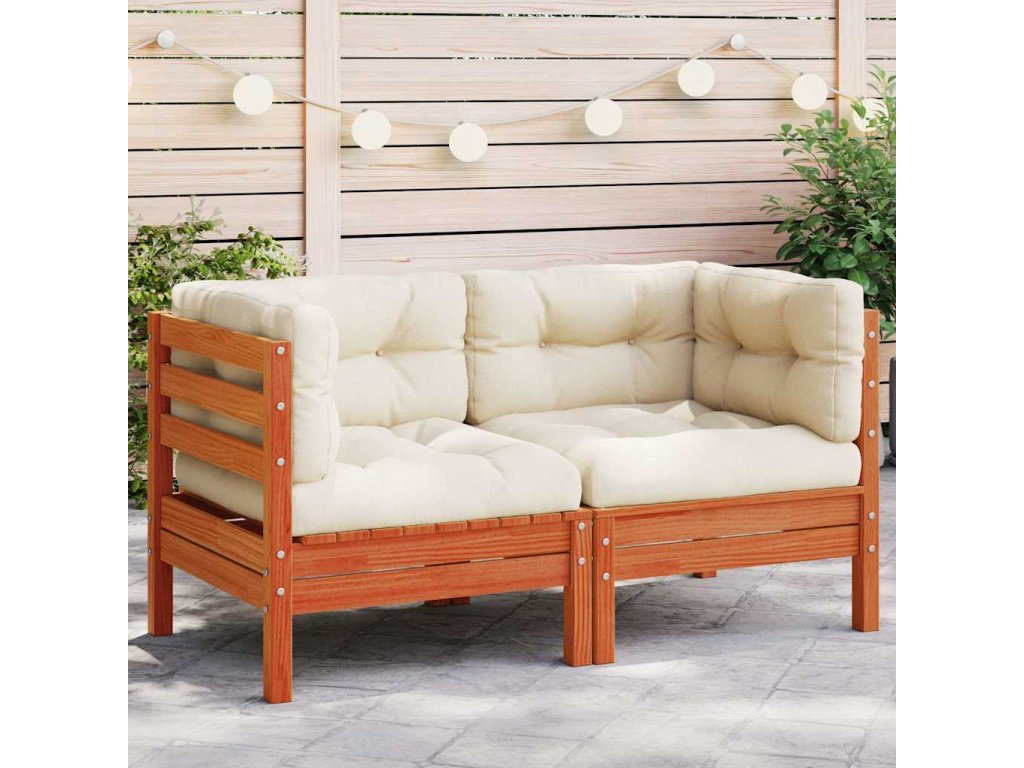 Multidom Záhr.pohovka rohová s vankúšmi 2ks vosková hnedá masív.borovica