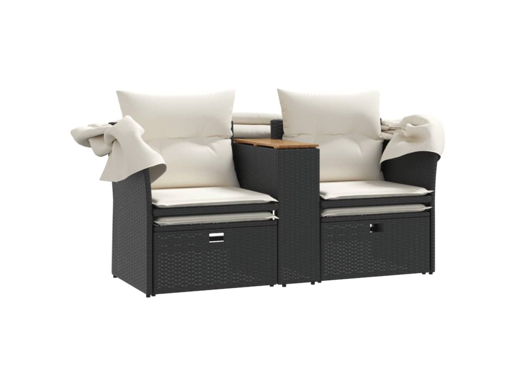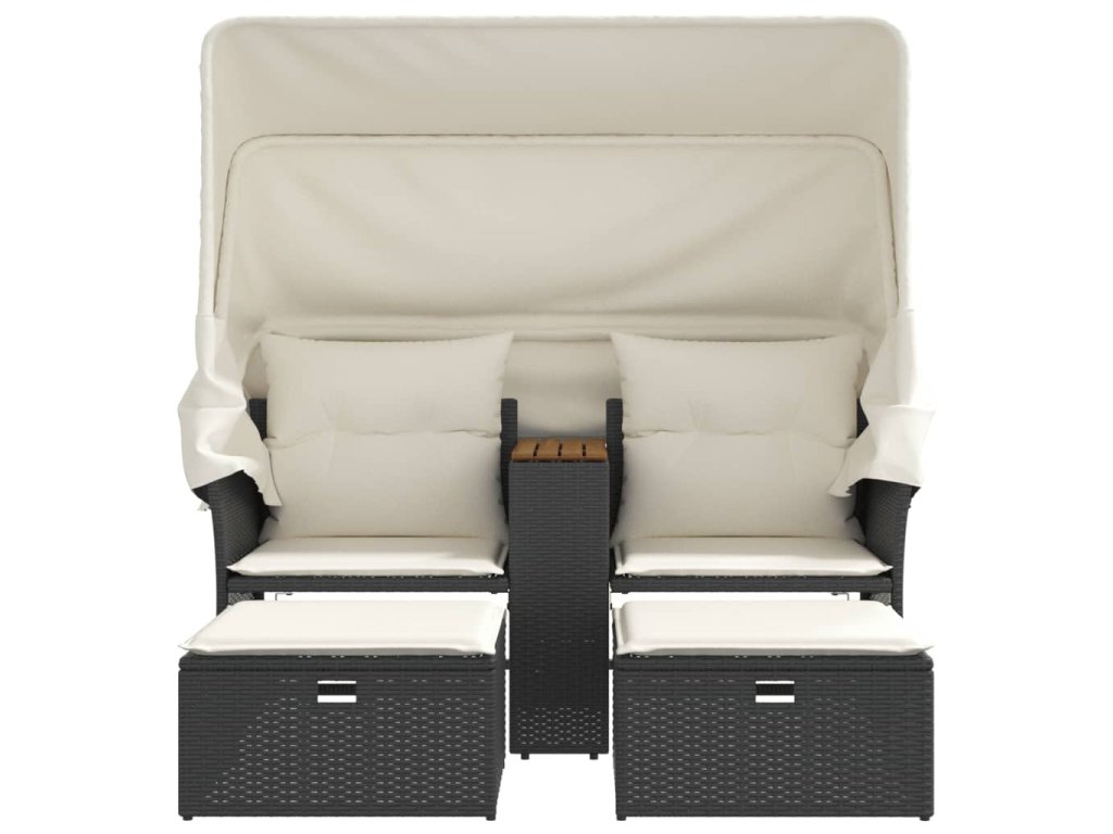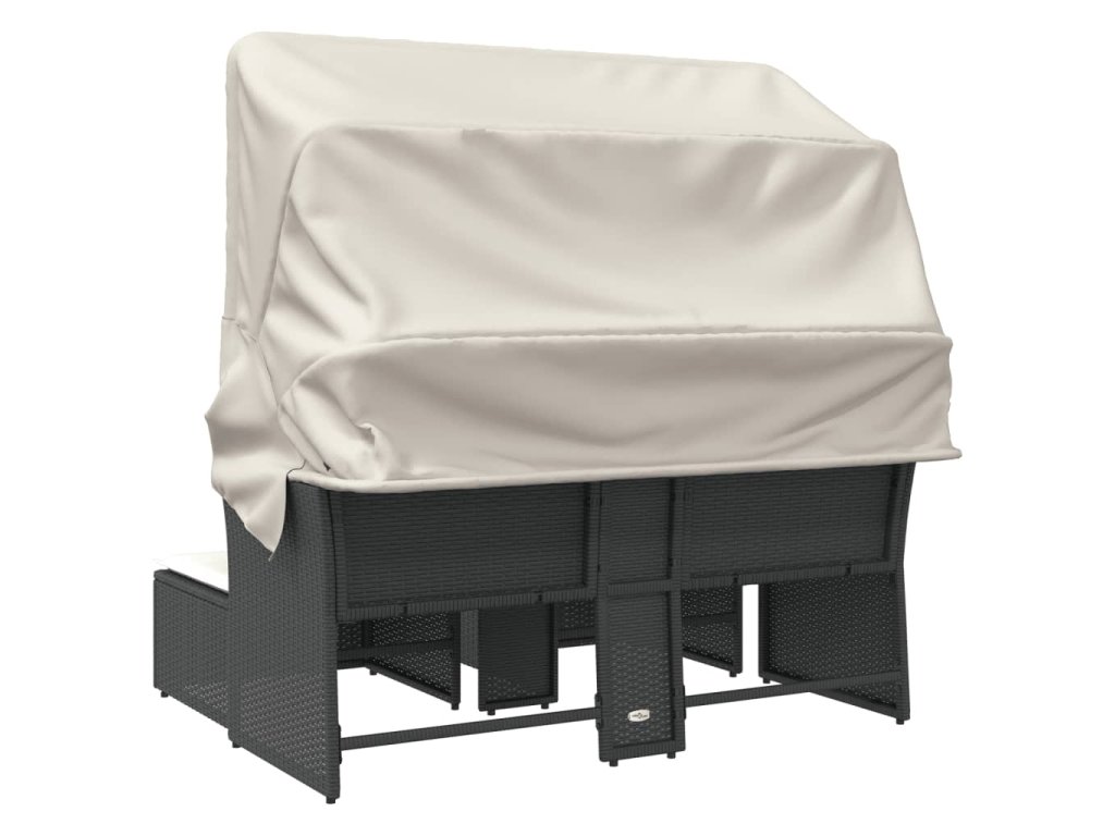 Multidom Záhrad. pohovka 2-miestna strieška a taburetky čierna polyratan