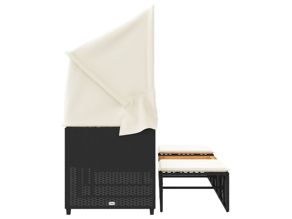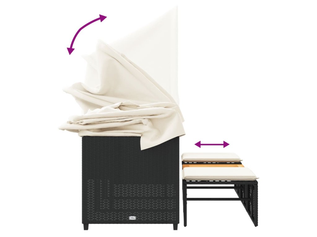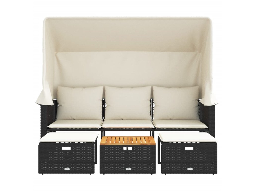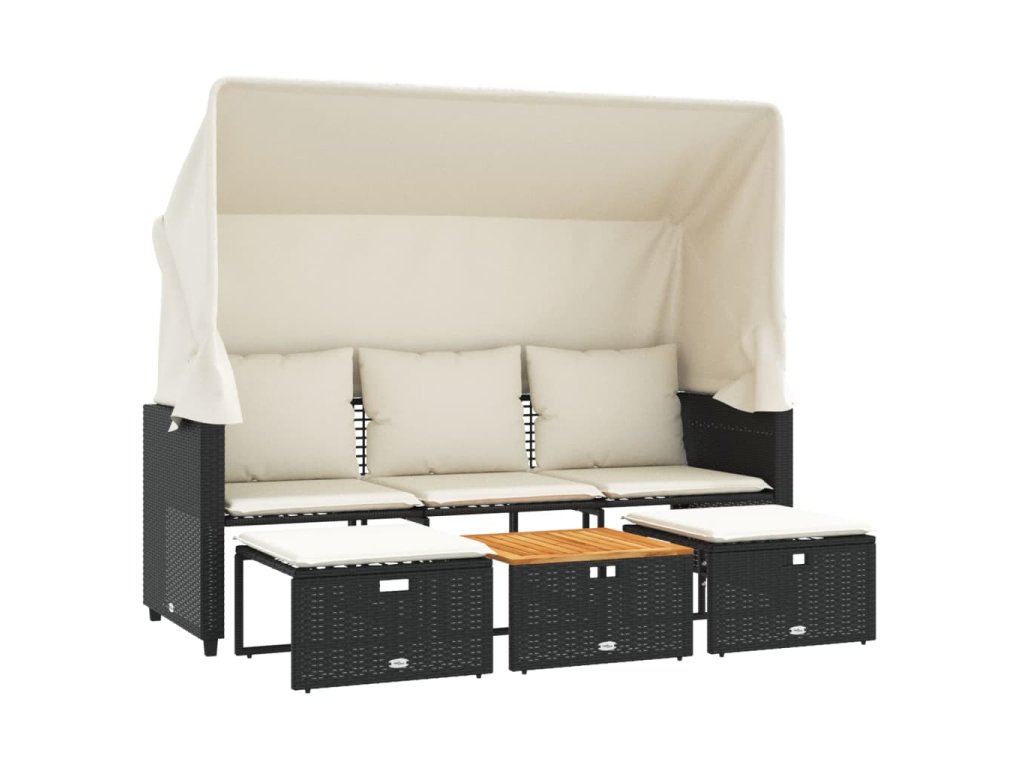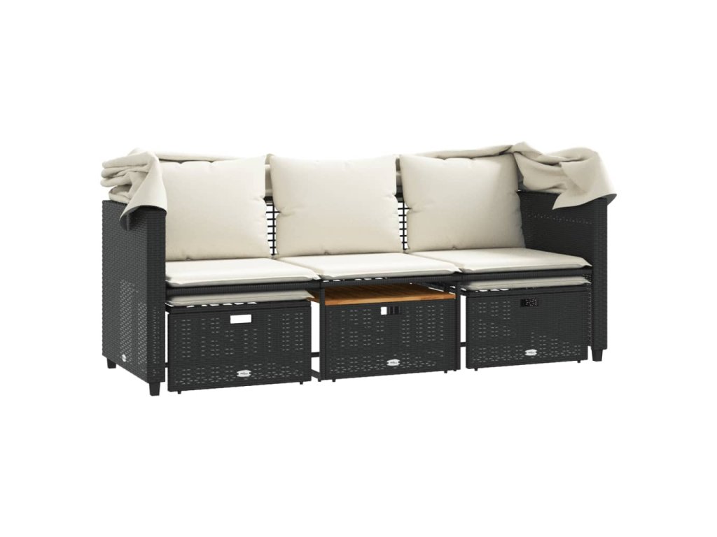 Multidom Záhrad. pohovka 3-miestna strieška a taburetky čierna polyratan