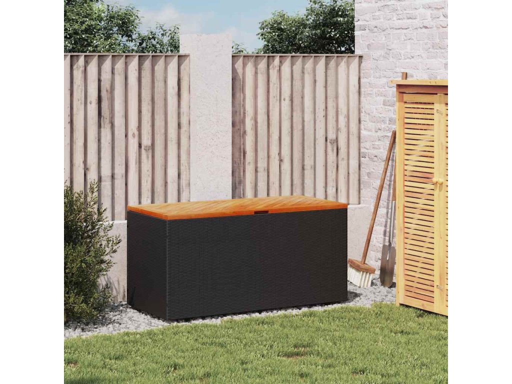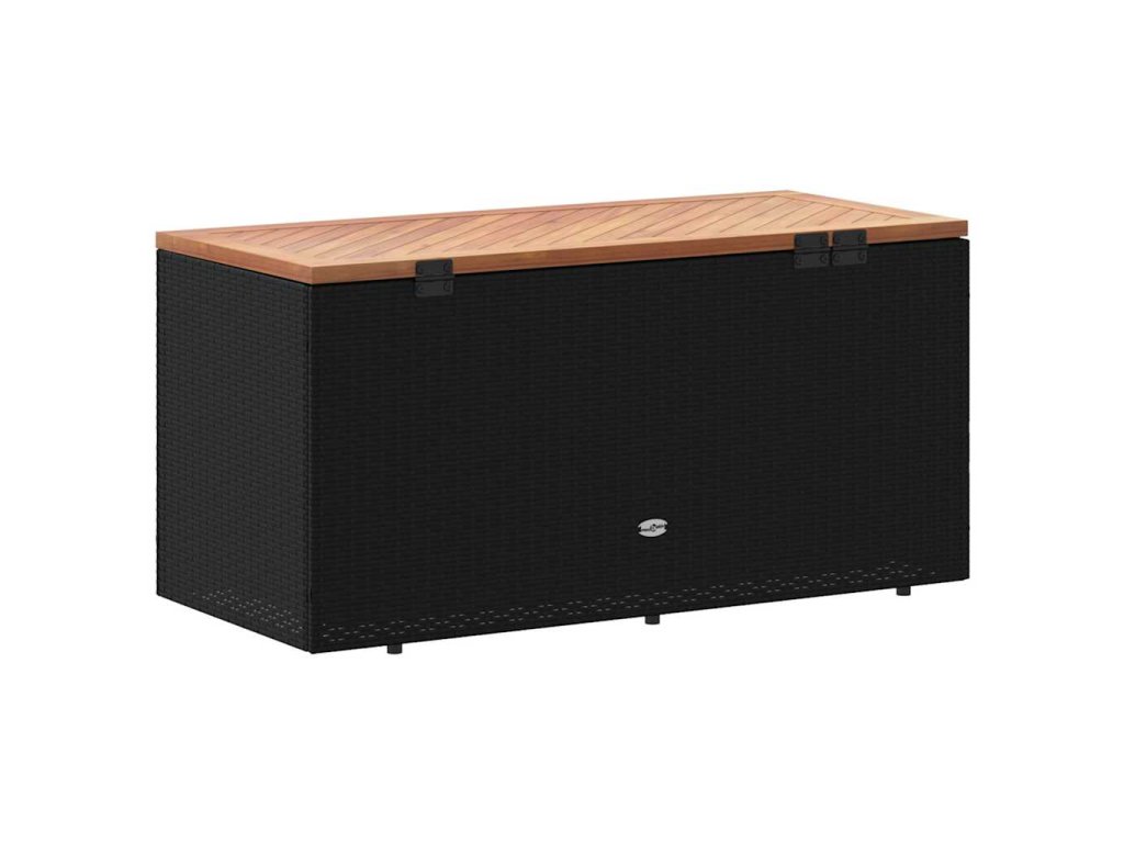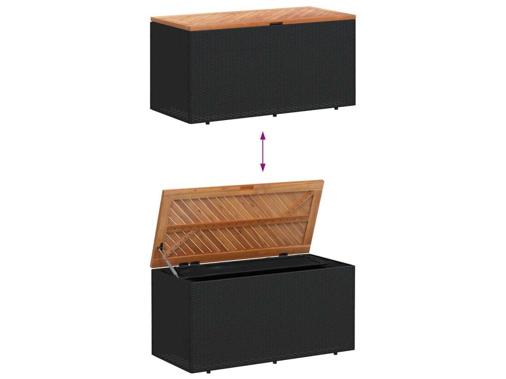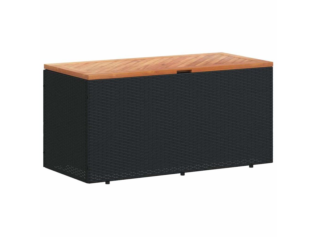 Multidom Záhrad. úložný box čierny 110x50x54 cm polyratan akáciové drevo