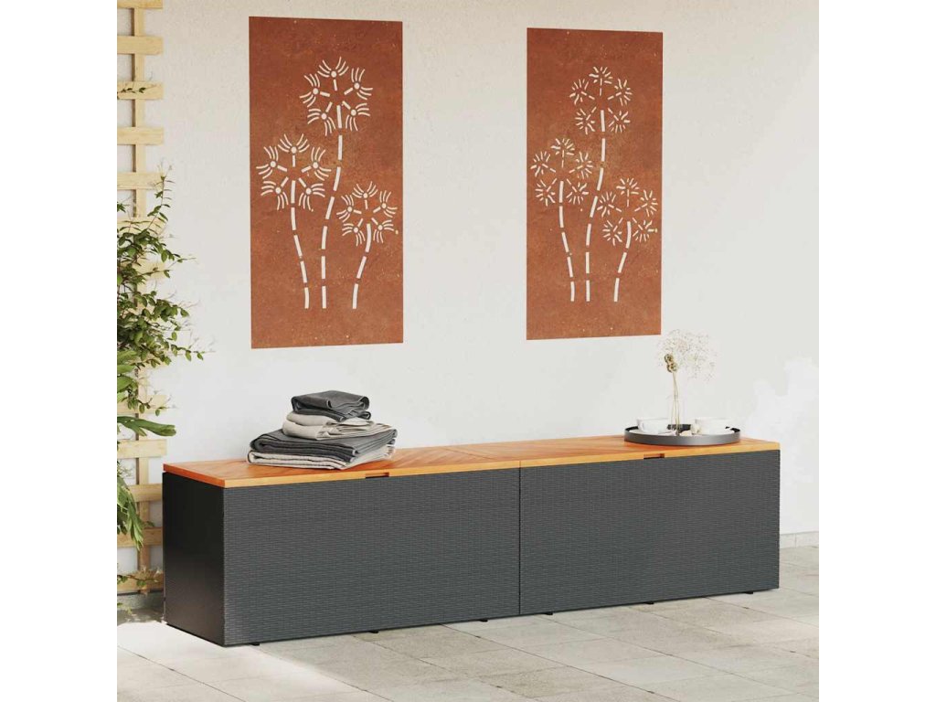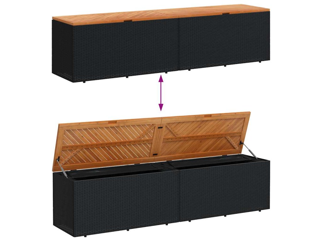 Multidom Záhrad. úložný box čierny 220x50x54 cm polyratan akáciové drevo
