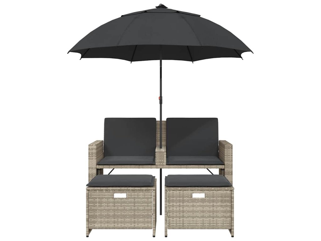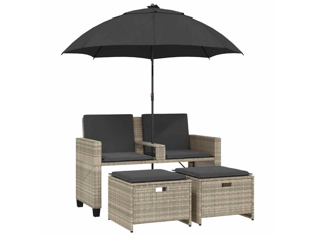 Multidom Záhradná 2-miestna pohovka so slnečníkom a taburetkami