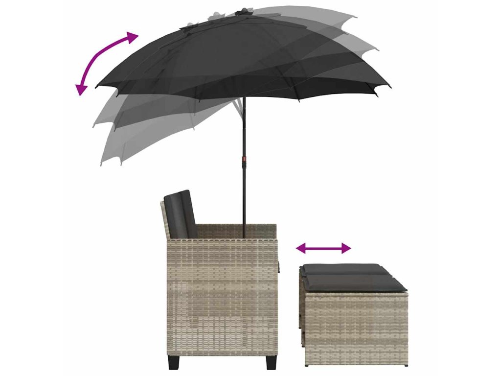 - Praktický slnečník: Záhradná pohovka je vybavená slnečníkom s naklápacím mechanizmom, ktorý vám umožní jednoducho nastaviť baldachýn pre optimálny tieň a ochranu pred slnkom.