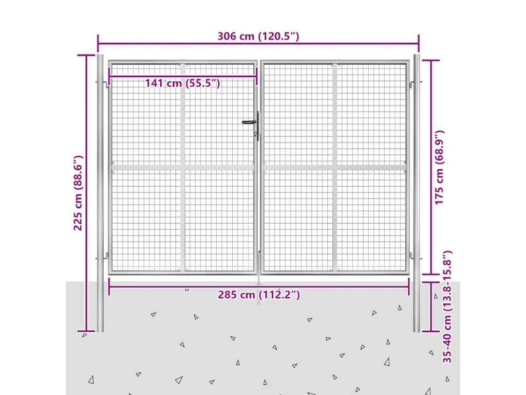 Záhradná brána je tvorená hrubými zváranými vertikálnymi a horizontálnymi drôtmi, ktoré jej dodávajú mimoriadnu pevnosť, vďaka čomu poskytuje optimálnu bezpečnosť a súkromie a zároveň vytvára pôsobivý vstup na pozemok. Brána je vyrobená z pozinkovanej ocele, ktorá je odolná voči hrdzi a korózii. Brána sa navyše dodáva spolu s robustnými pántmi a súčasťou balenia je aj odolný uzamykací systém s 3 kľúčmi. Brána sa jednoducho montuje.