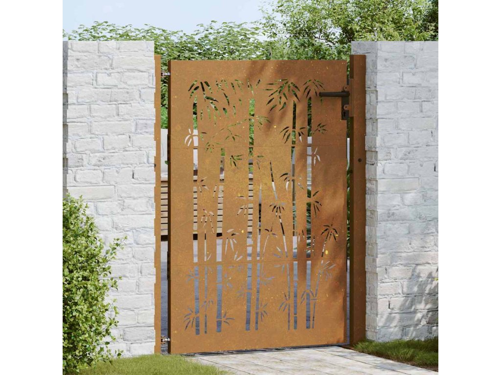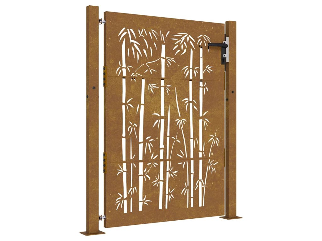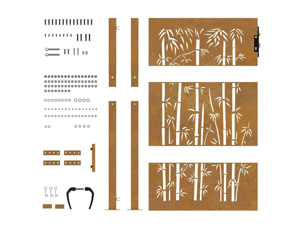 Multidom Záhradná brána 100x125 cm, corten oceľ, bambusový dizajn