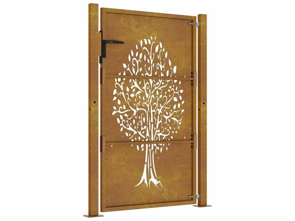 Multidom Záhradná brána 100x125 cm z kortenovej ocele, dizajn stromu
