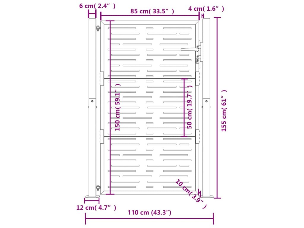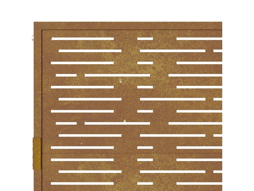 - Odolná konštrukcia: Táto plotová brána je vyrobená z kortenovej ocele. Kortenová oceľ, tiež známa ako oceľ odolná voči poveternostným vplyvom. Je vo svojej podstate antikorózna. Pri prvom vystavení atmosférickým podmienkam sa na nej vytvorí hrdzavá vrstva, ktorá chráni pred koróziou. Preto ju nemusíte natierať. Vďaka tomu ušetríte náklady na údržbu a opravy. Výrazný hnedý odtieň cortenovej ocele zaručene upúta pozornosť. Oceľ je odolná voči poveternostným podmienkam, a je mimoriadne trvácna a obstojí v skúške časom.