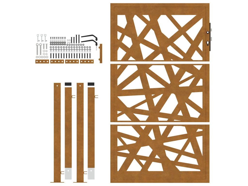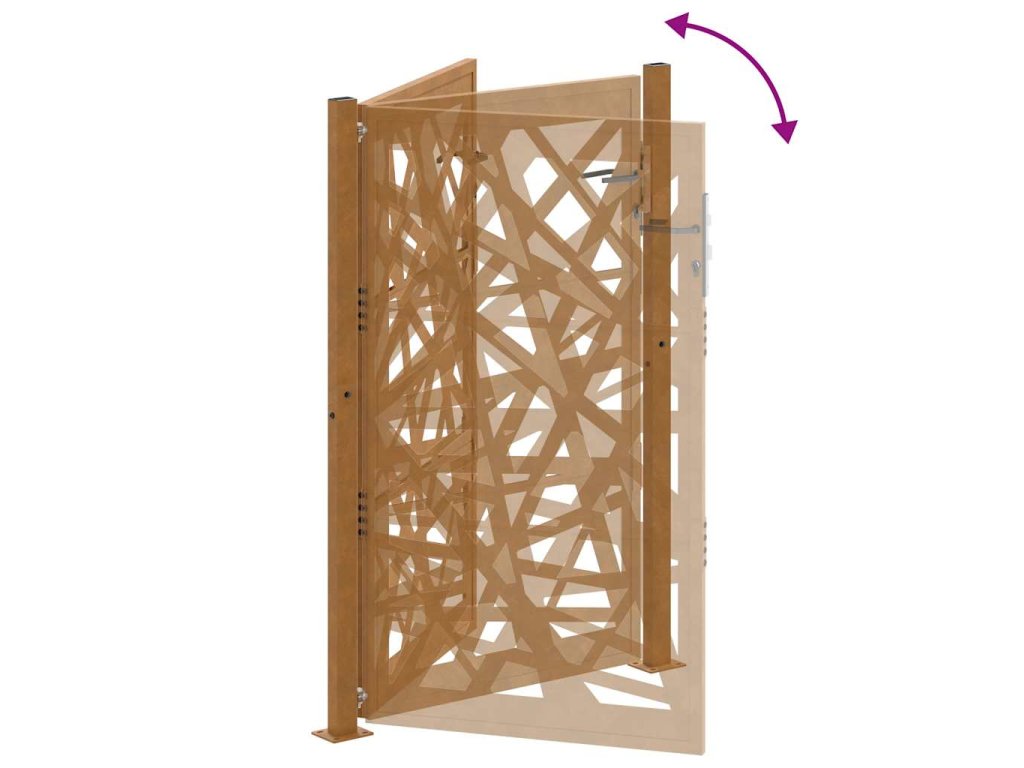 - Odolná konštrukcia: Táto plotová brána je vyrobená z ocele odolávajúcej poveternostným vplyvom. Oceľ odolná voči poveternostným vplyvom je antikorózna už svojou podstatou. Pri prvom vystavení atmosférickým podmienkam vytvára hrdzavú ochrannú vrstvu proti korózii. Nemusíte ho teda maľovať. To vám môže pomôcť ušetriť náklady na údržbu a opravy. Výrazná hnedá farba na poveternostnej oceli určite upúta. Napokon, poveternostná oceľ je mimoriadne odolná a obstojí v skúške času.