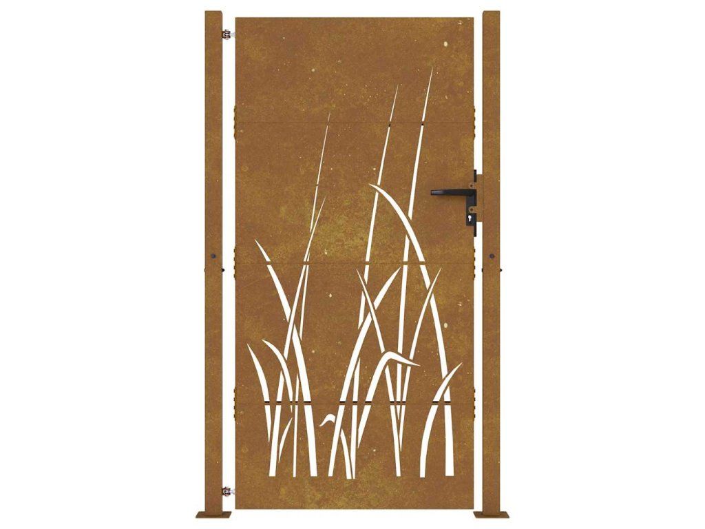 Multidom Záhradná brána 100x175 cm, oceľ Corten, dizajn s trávou