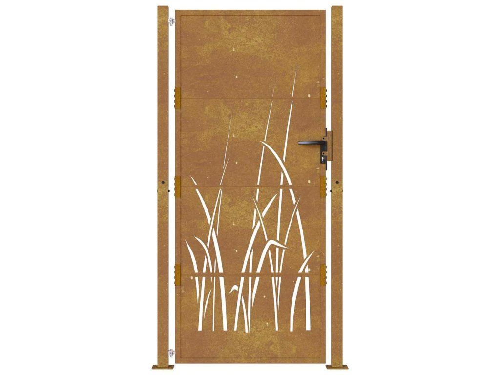 Multidom Záhradná brána 100x175 cm, oceľ Corten, dizajn s trávou