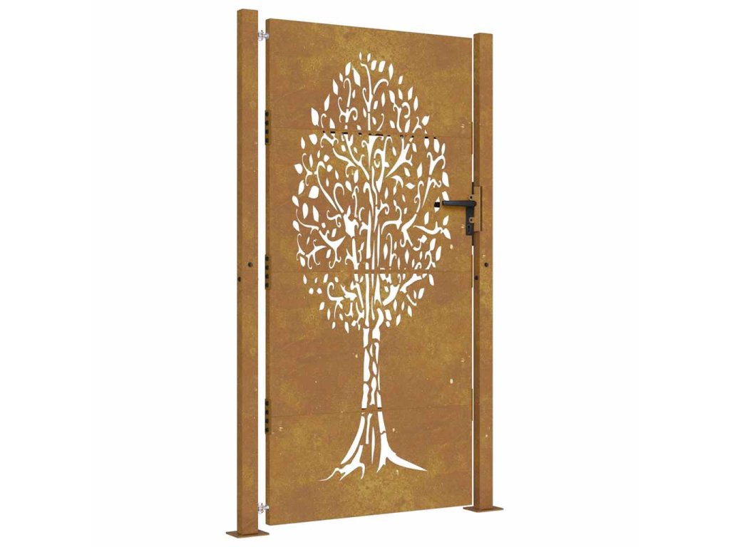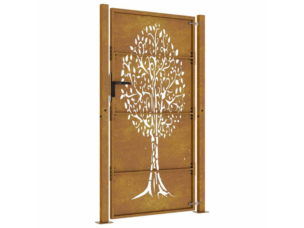 Multidom Záhradná brána 100x200 cm z kortenovej ocele, dizajn stromu