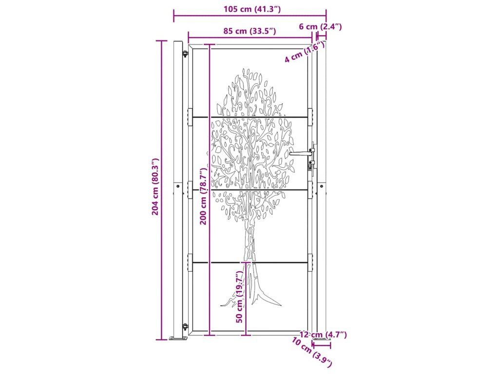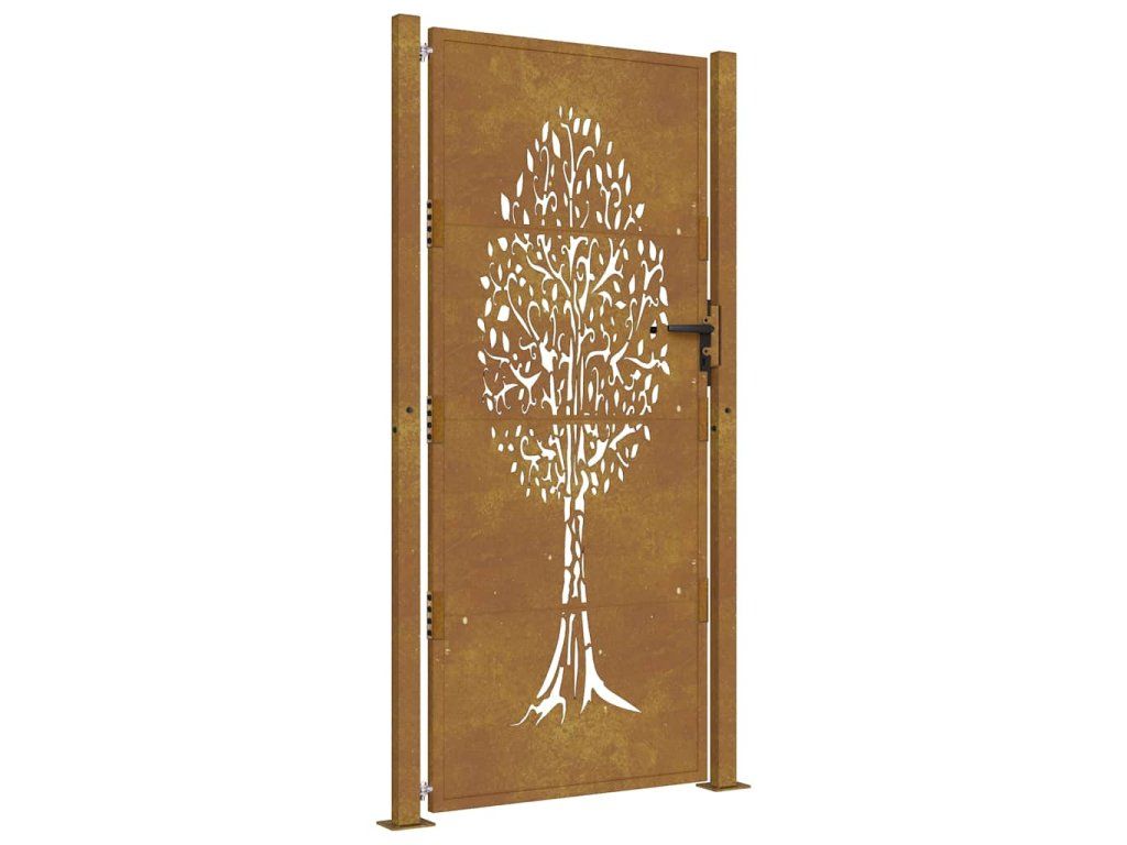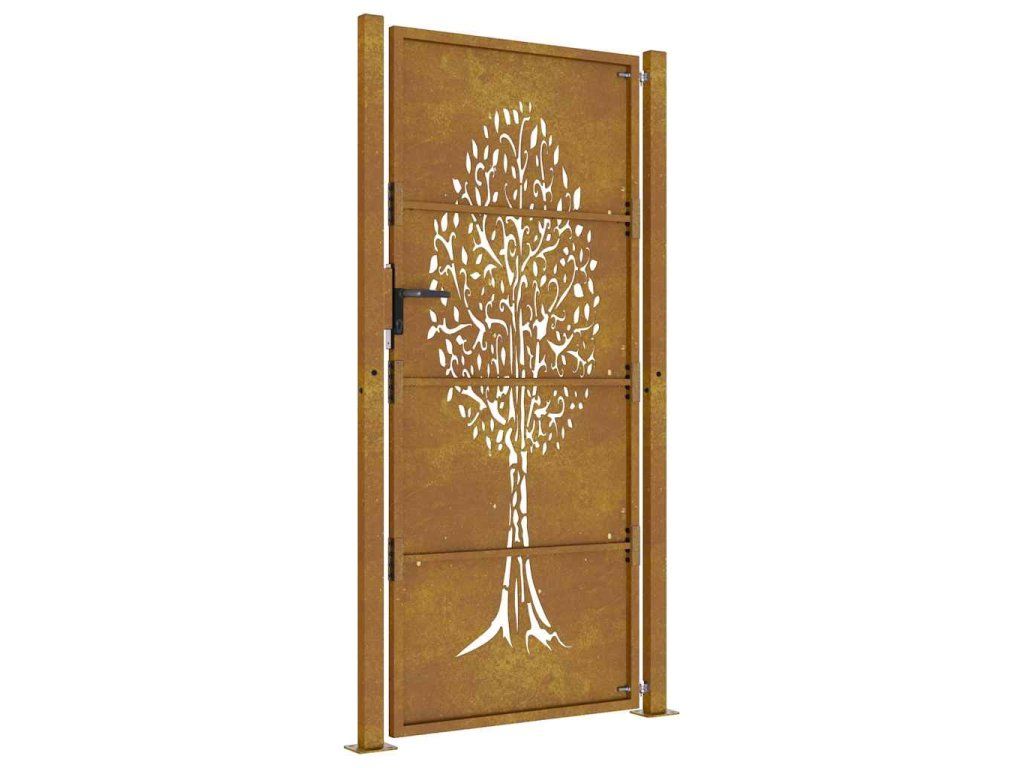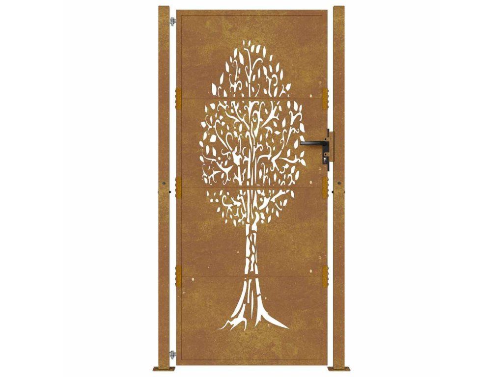 Multidom Záhradná brána 100x200 cm z kortenovej ocele, dizajn stromu