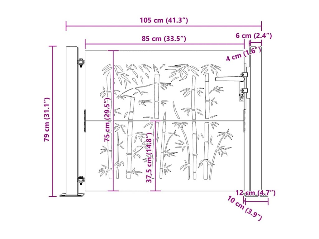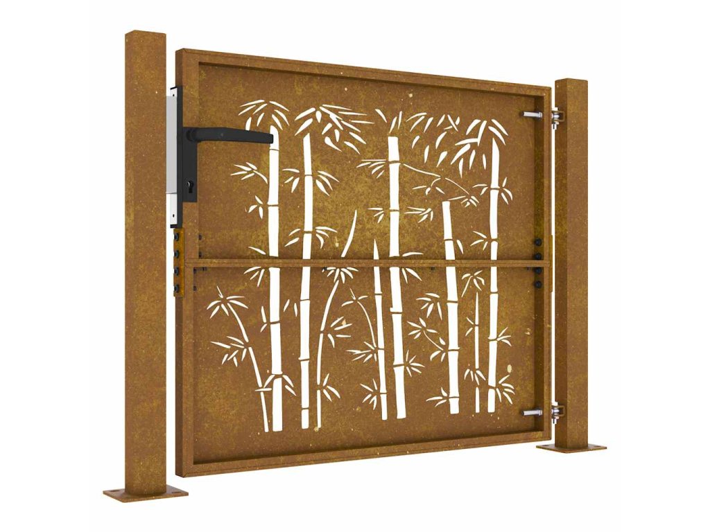 Multidom Záhradná brána 100x75 cm, corten oceľ, bambusový dizajn