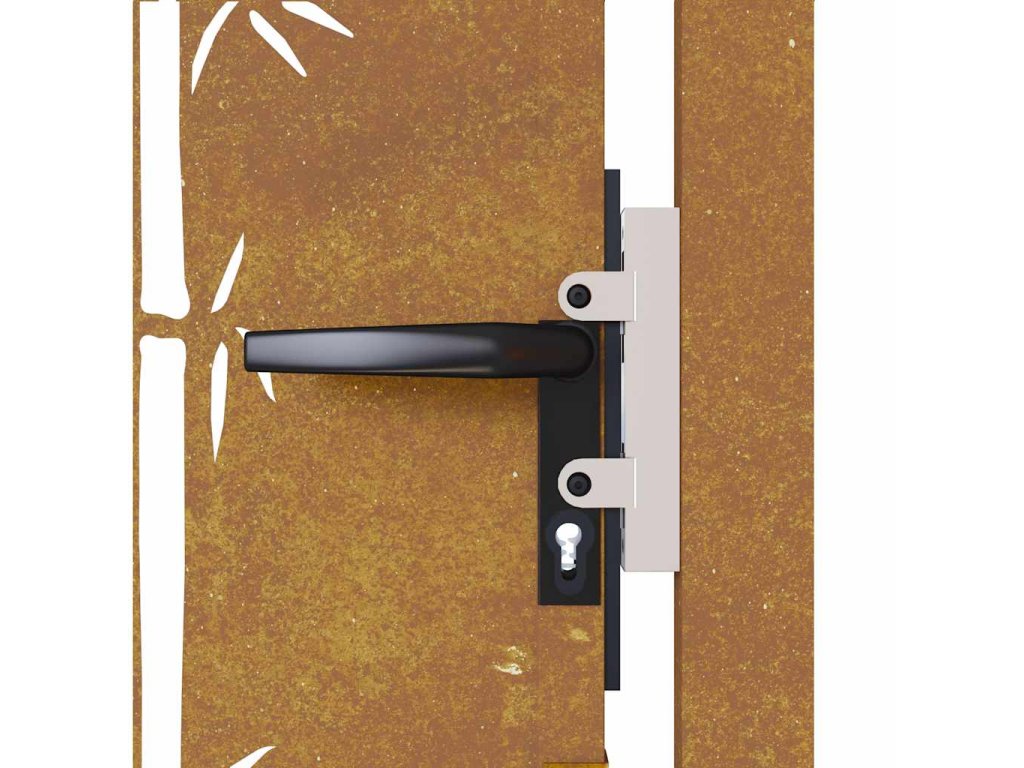 - Odolný materiál: Kovová brána je vyrobená z kortenovej ocele. Kortenová oceľ, tiež známa ako oceľ odolná voči poveternostným vplyvom. Je vo svojej podstate antikorózna. Pri prvom vystavení atmosférickým podmienkam sa na nej vytvorí hrdzavá vrstva, ktorá chráni pred koróziou. Preto ju nemusíte natierať. Vďaka tomu ušetríte náklady na údržbu a opravy. Výrazný hnedý odtieň cortenovej ocele zaručene upúta pozornosť. Poveternostne odolná oceľ je mimoriadne trvácna a obstojí v skúške časom.