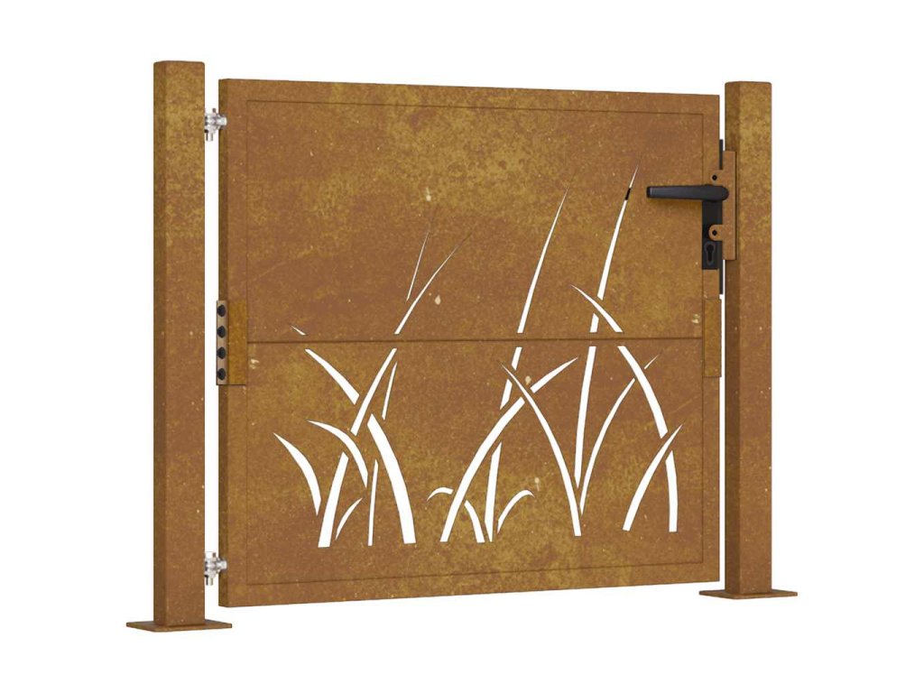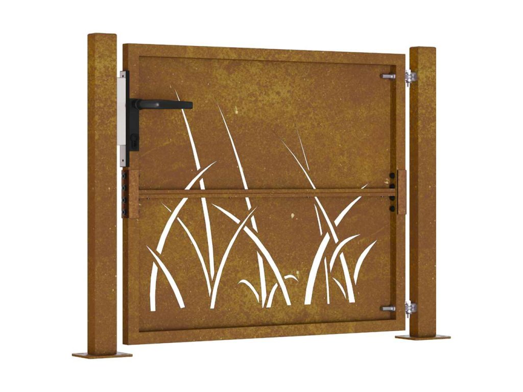 Multidom Záhradná brána 100x75 cm, oceľ Corten, dizajn s trávou