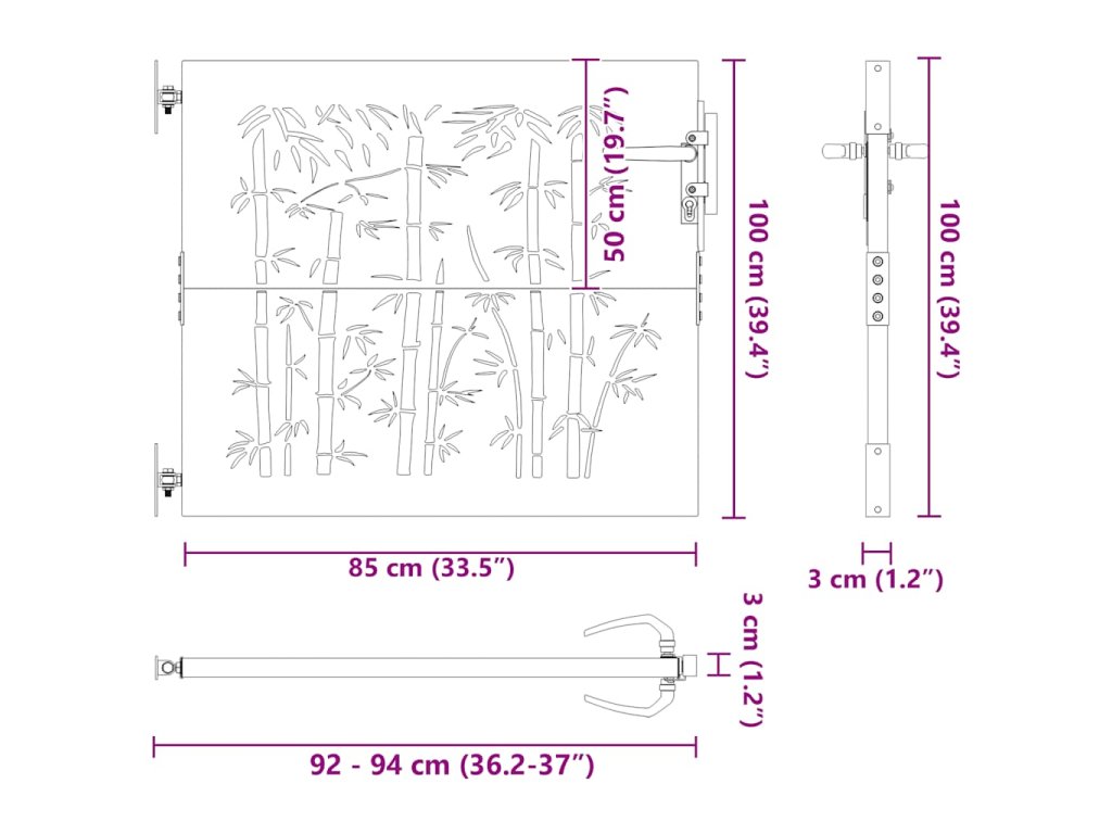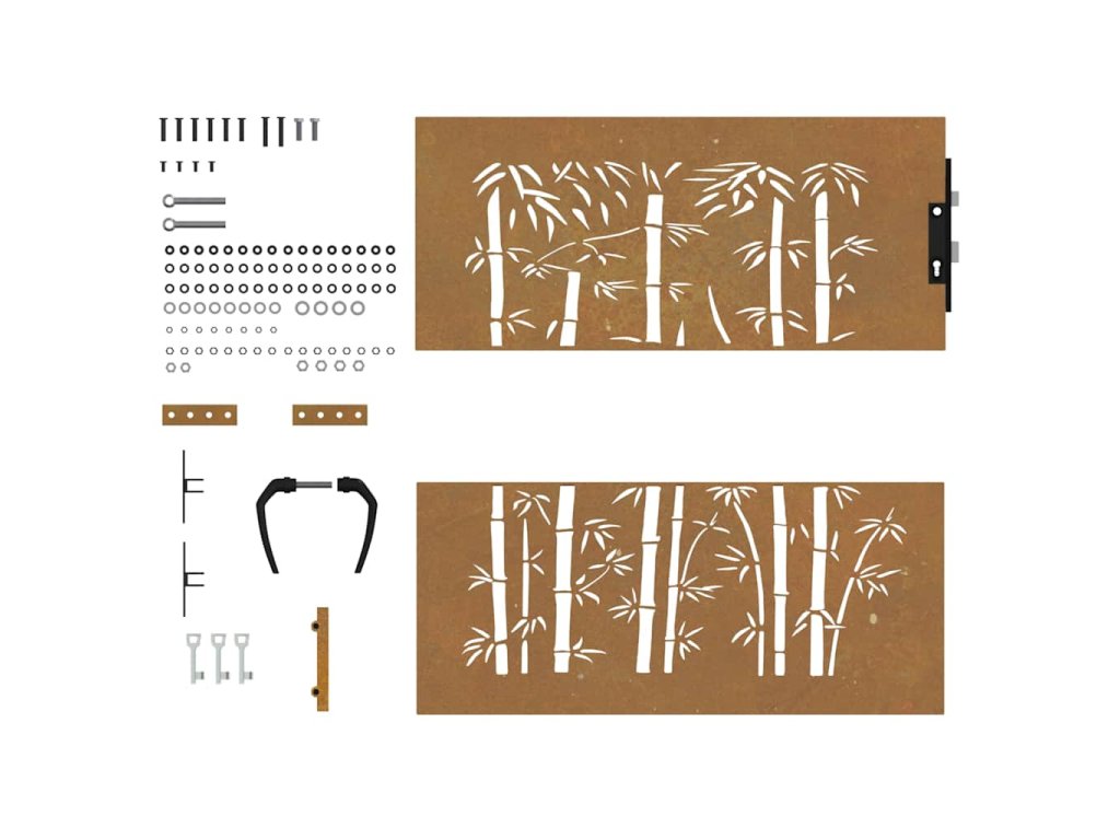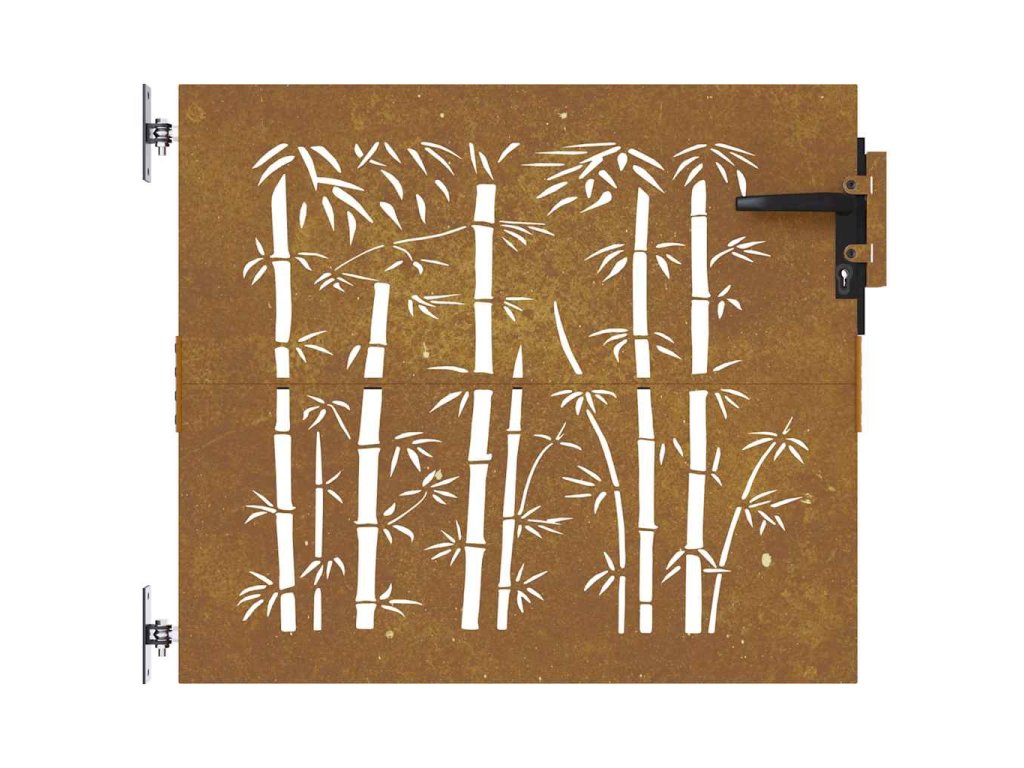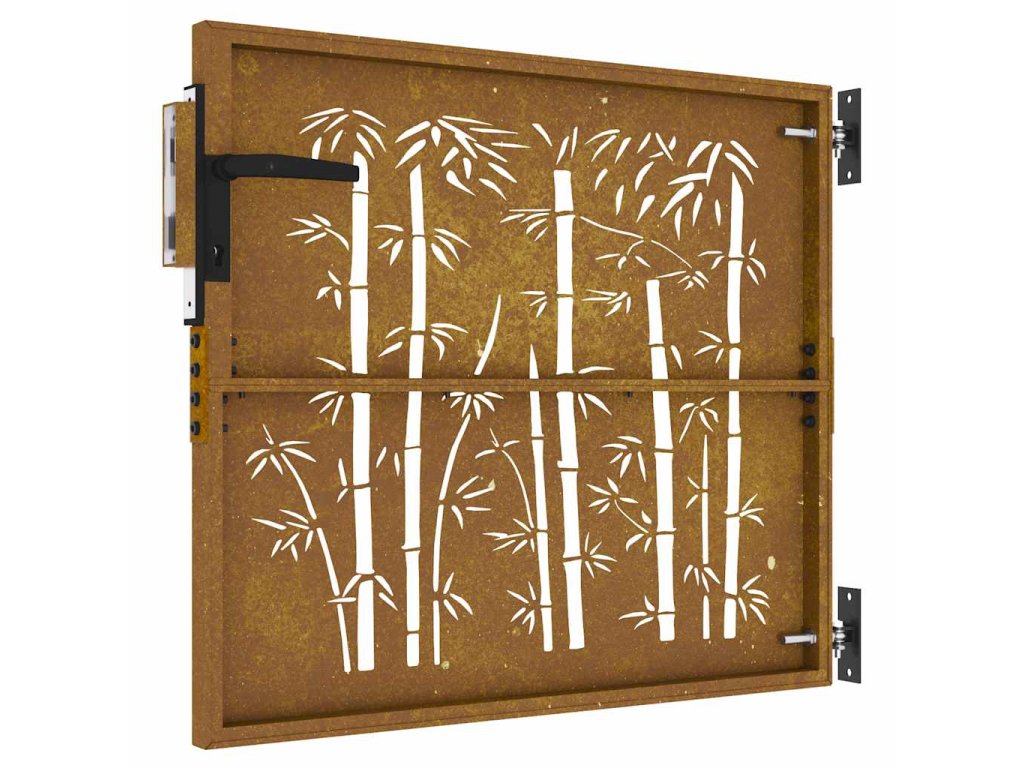 Multidom Záhradná brána 85x100 cm, corten oceľ, bambusový dizajn