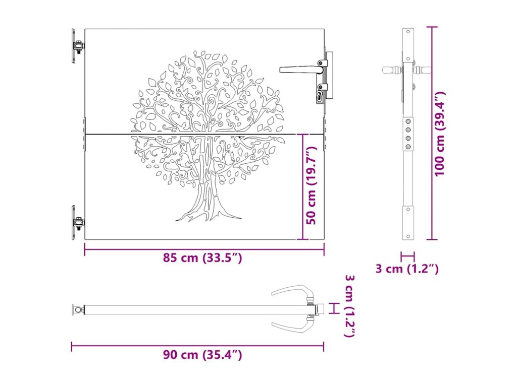 Multidom Záhradná brána 85x100 cm z kortenovej ocele, dizajn stromu