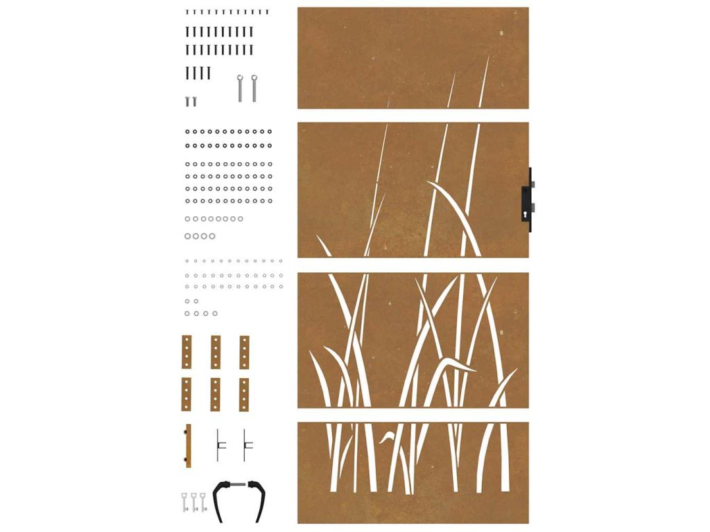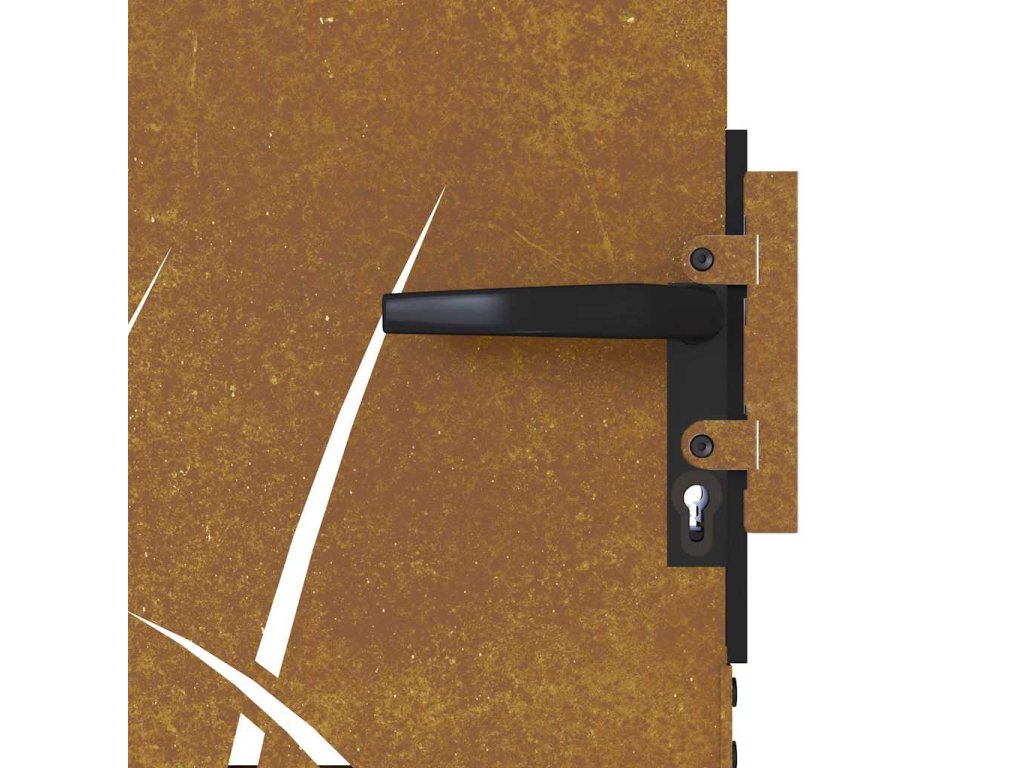 • Odolný materiál: Kovová brána je vyrobená z kortenovej ocele. Kortenová oceľ, tiež známa ako oceľ odolná voči poveternostným vplyvom. Je vo svojej podstate antikorózna. Pri prvom vystavení atmosférickým podmienkam sa na nej vytvorí hrdzavá vrstva, ktorá chráni pred koróziou. Preto ju nemusíte natierať. Vďaka tomu ušetríte náklady na údržbu a opravy. Výrazný hnedý odtieň cortenovej ocele zaručene upúta pozornosť. Poveternostne odolná oceľ je mimoriadne trvácna a obstojí v skúške časom.