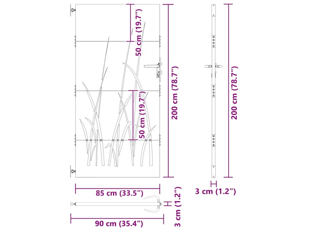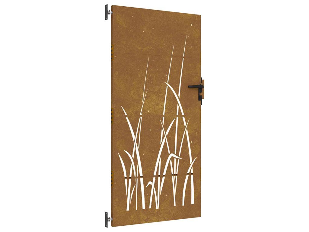 Multidom Záhradná brána 85x200 cm, oceľ Corten, dizajn s trávou