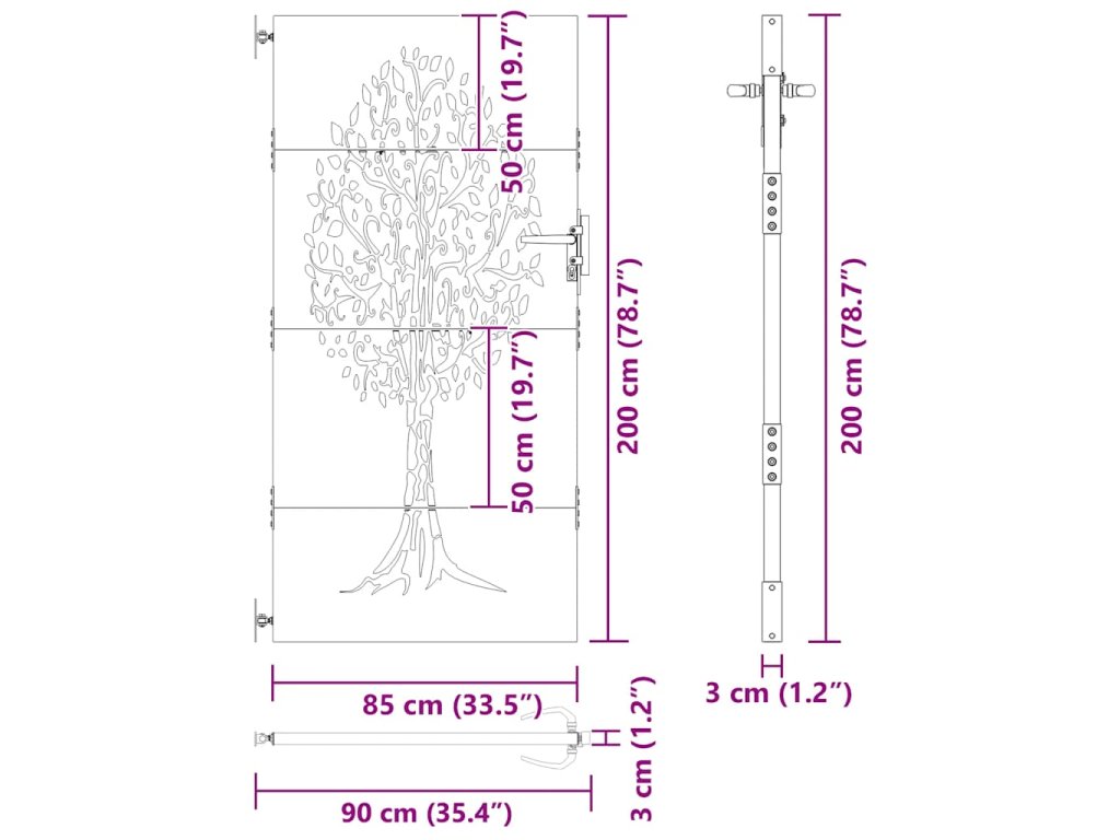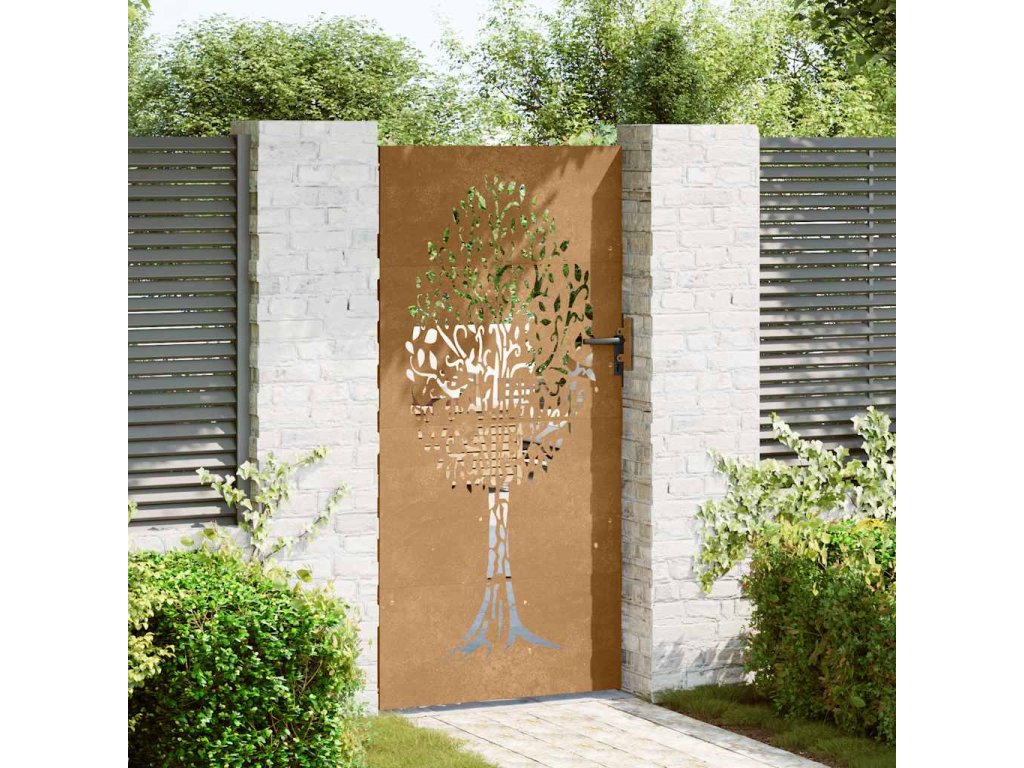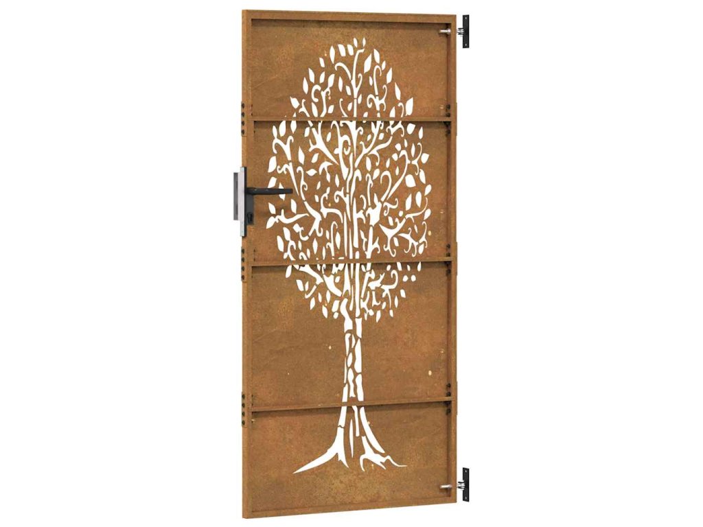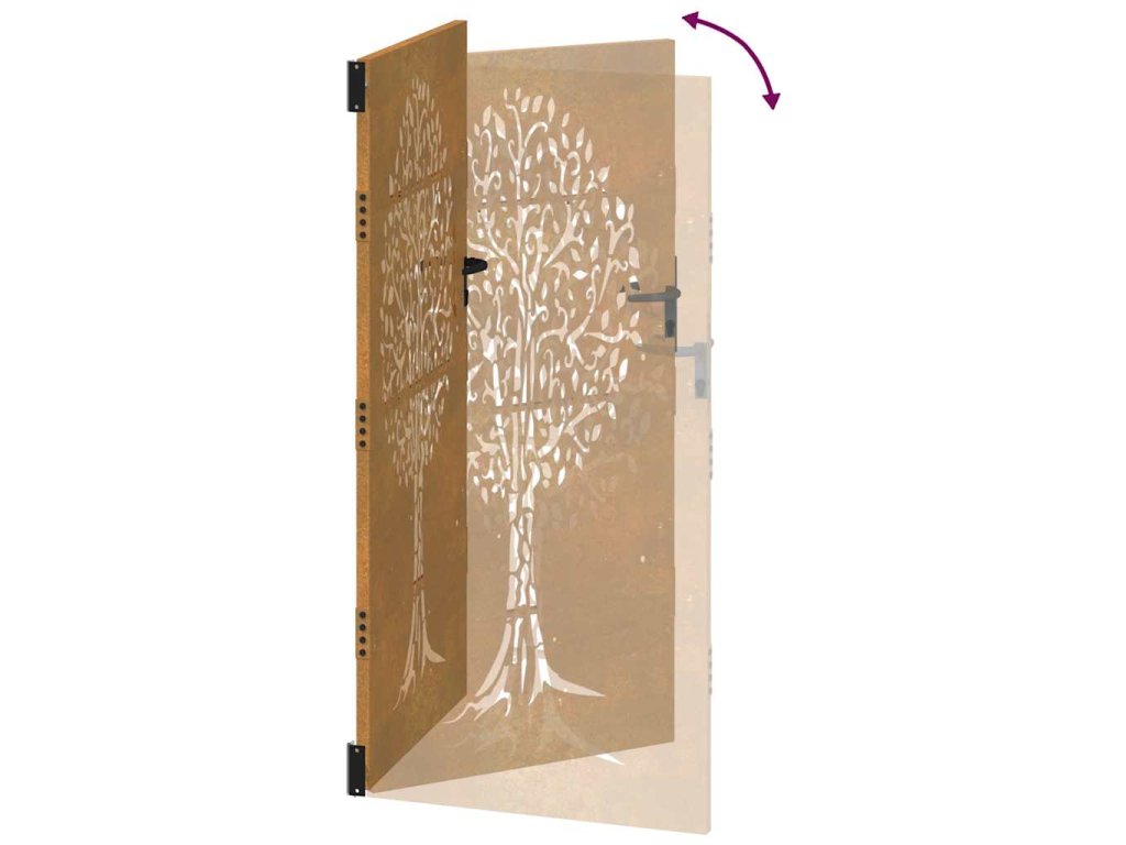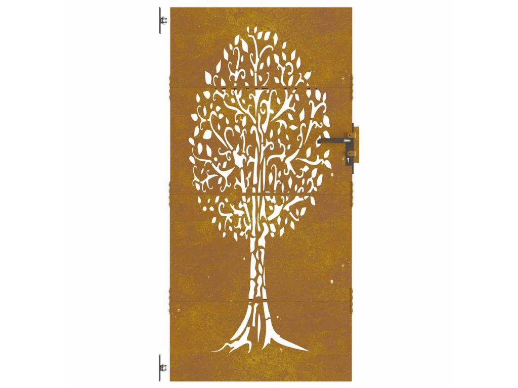 Multidom Záhradná brána 85x200 cm z kortenovej ocele, dizajn stromu
