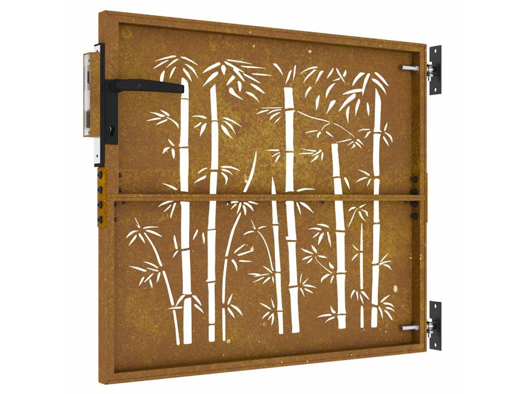 Multidom Záhradná brána 85x75 cm, corten oceľ, bambusový dizajn