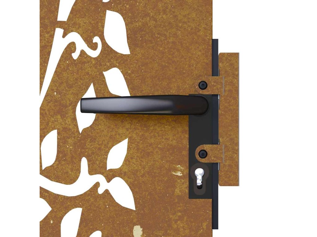 - Odolný materiál: Kovová brána je vyrobená z kortenovej ocele. Kortenová oceľ, tiež známa ako oceľ odolná voči poveternostným vplyvom. Je vo svojej podstate antikorózna. Pri prvom vystavení atmosférickým podmienkam sa na nej vytvorí hrdzavá vrstva, ktorá chráni pred koróziou. Preto ju nemusíte natierať. Vďaka tomu ušetríte náklady na údržbu a opravy. Výrazný hnedý odtieň cortenovej ocele zaručene upúta pozornosť. Poveternostne odolná oceľ je mimoriadne trvácna a obstojí v skúške časom.