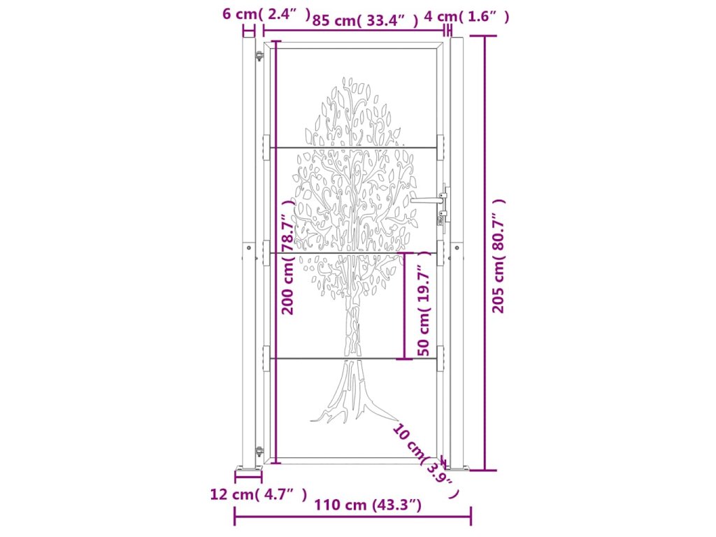 Multidom Záhradná brána antracitová 100x200 cm oceľový dizajn stromu