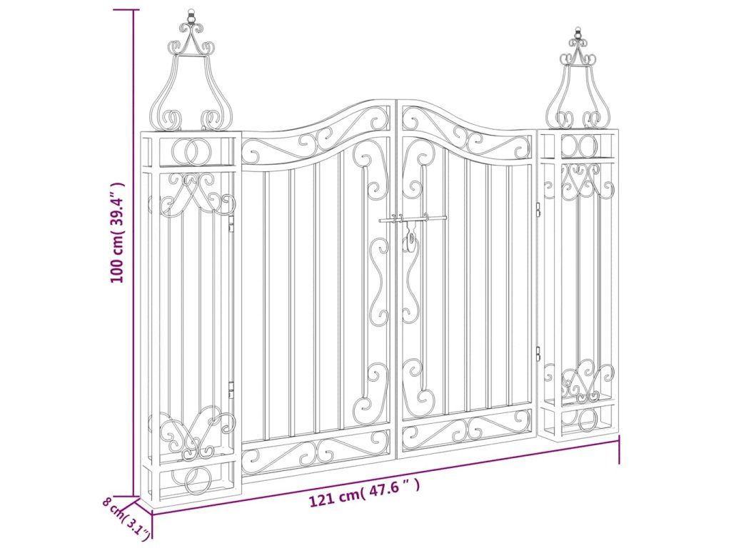 - Uzamykateľný systém: Brána z tepaného železa je dodávaná s otočným závesom pre rýchle uzamykanie na zvýšenie bezpečnosti.